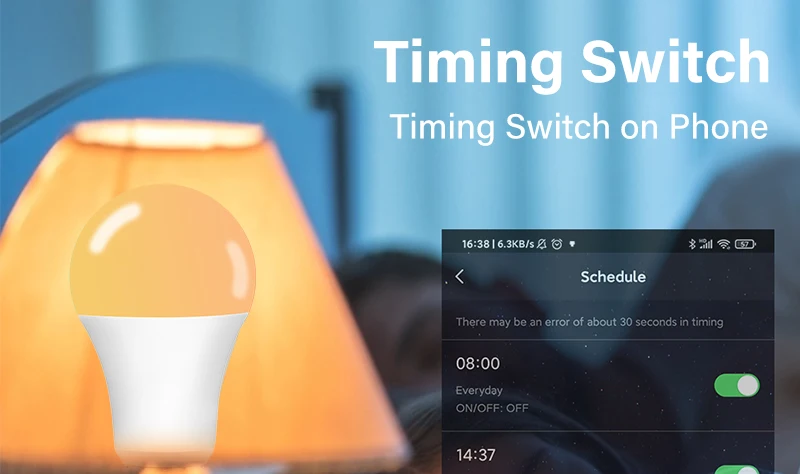 Никогда не Возвращайтесь домой в темный дом-с помощью светлого графика в приложении и Будьте здоровы с теплым светом. Функция таймера позволяет автоматически включать и выключать умную светодиодную лампочку.