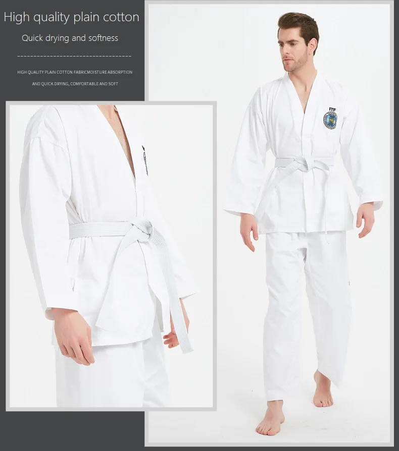 ITF Униформа для тхэквондо, белая одежда TKD Dobok для детей и взрослых, унисекс, наборы для боевых искусств