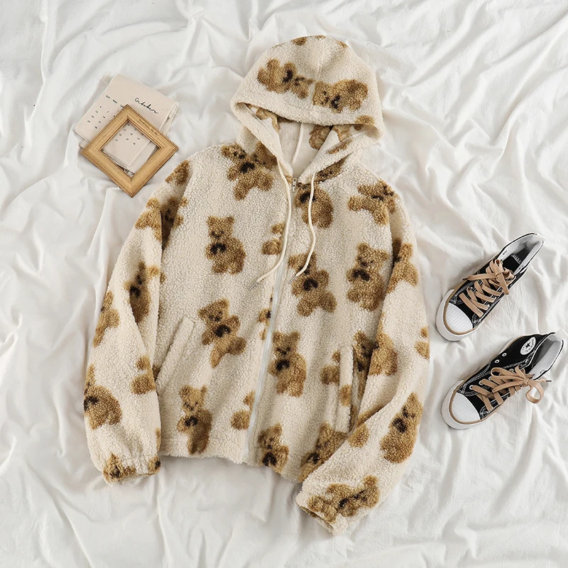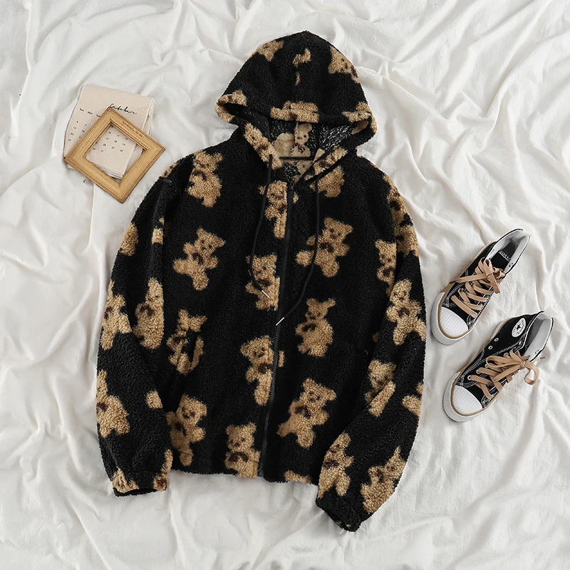 Женская плюшевая куртка в стиле Харадзюку 90-х годов с принтом в ви...