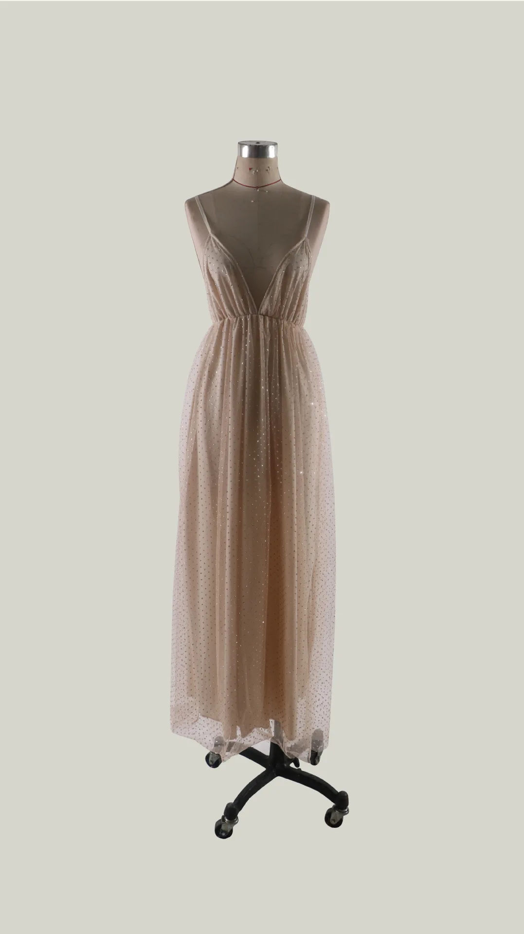 Золотое свадебное платье Dioflyusa на тонких бретельках с V-образн...