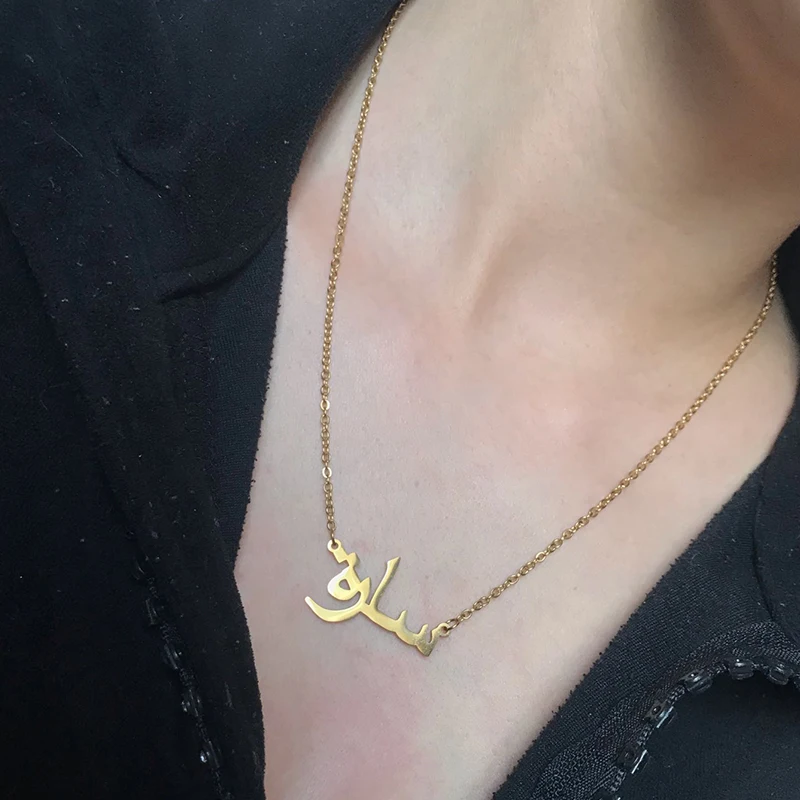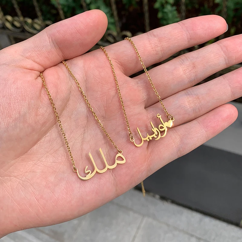 Индивидуальное ожерелье на заказ из нержавеющей стали с арабским именем для женщин и мужчин, индивидуальная табличка с именем, ювелирные изделия, подарок на свадьбу и помолвку