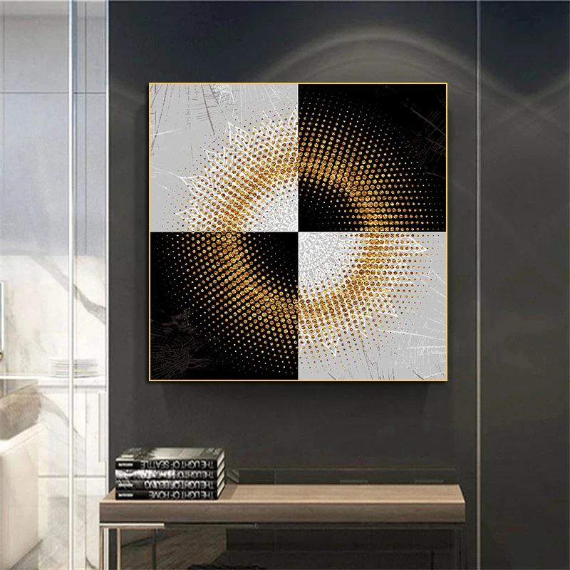 Роскошная Минималистичная HD Золотая круглая черно-белая Картина на холсте настенные художественные картины постер Куадрос гостиная домашний декор