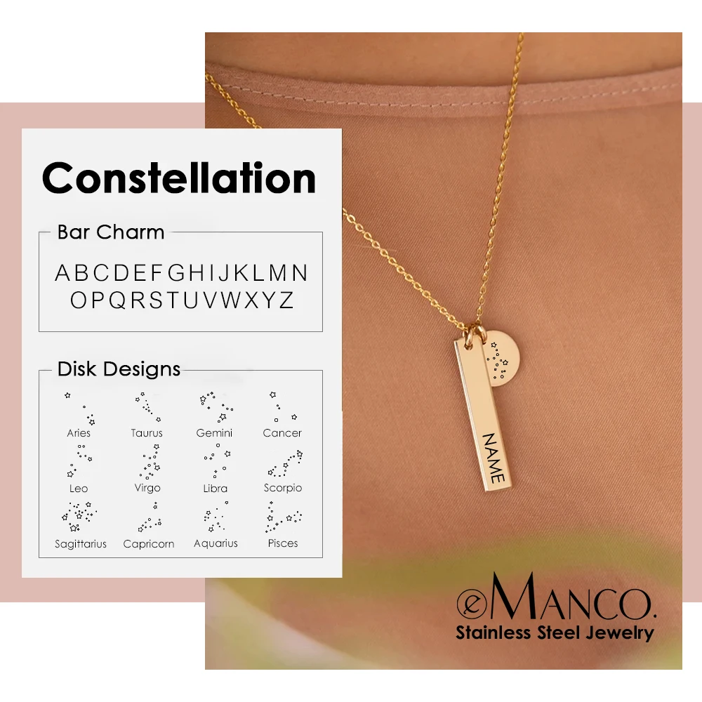 EManco минималистичное ожерелье со звездами и знаками Зодиака с диском, именем на заказ, подвеска из нержавеющей стали с созвездиями, подарки для женщин и мужчин