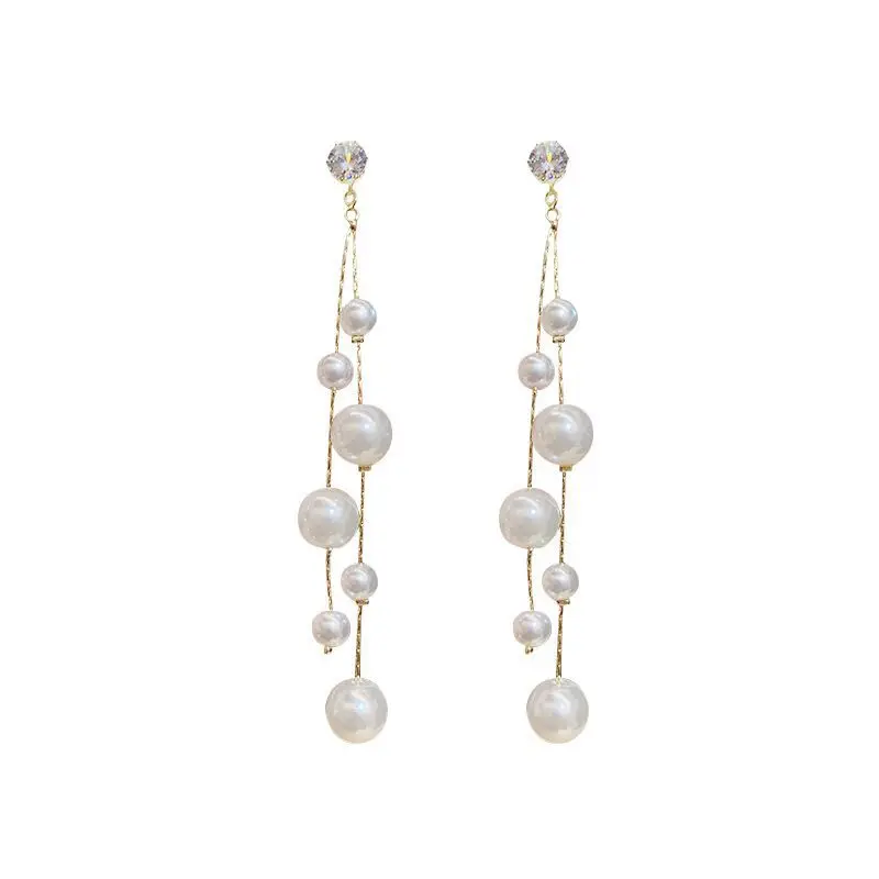 Длинные висячие серьги для женщин 2021 модные полные кристаллы искусственный жемчуг кисточки висячие серьги винтажные золотые серьги ювелирные изделия