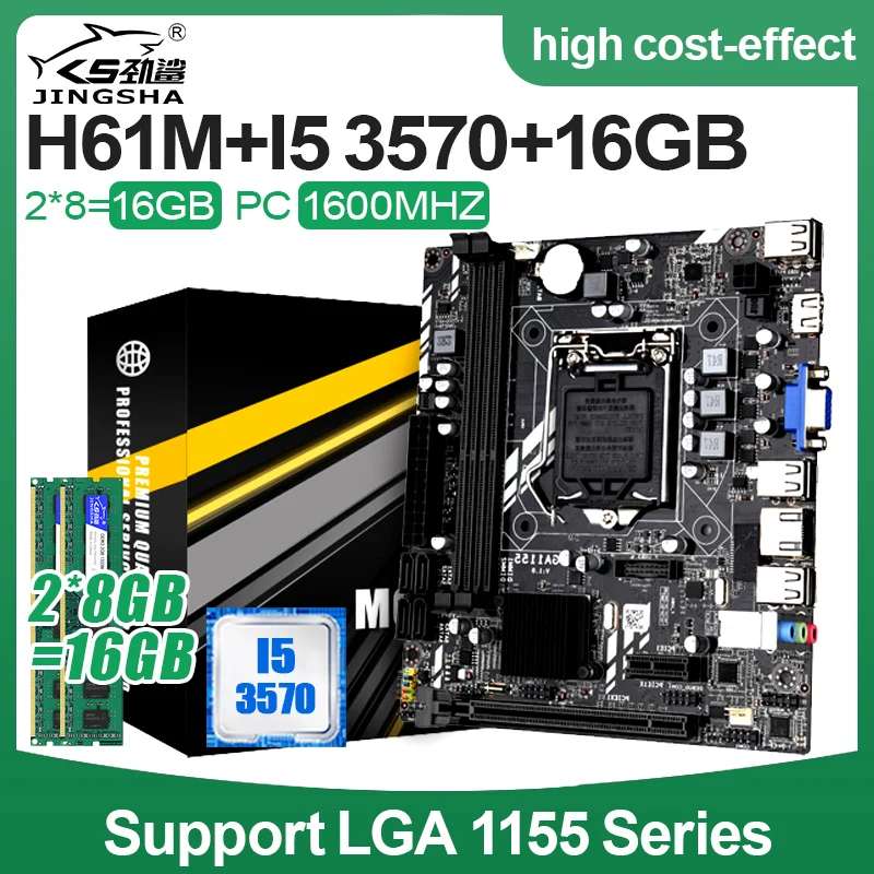 Комплект материнской платы H61M LGA 1155 с процессором i5-3570 и DDR3 2*8 ГБ = 16 Гб ОЗУ для ПК 1600 МГц Поддержка PCIE 8X USB 2,0