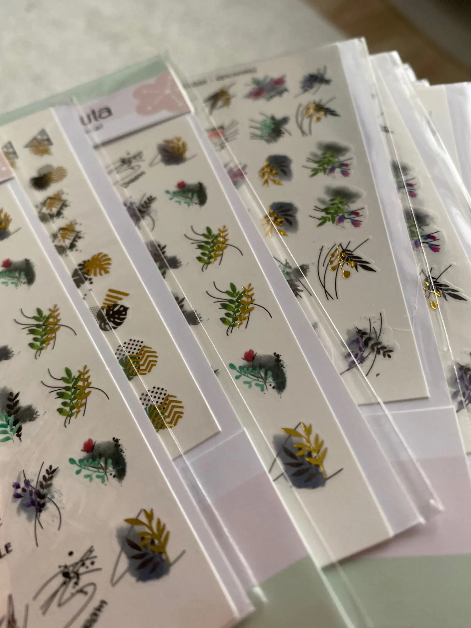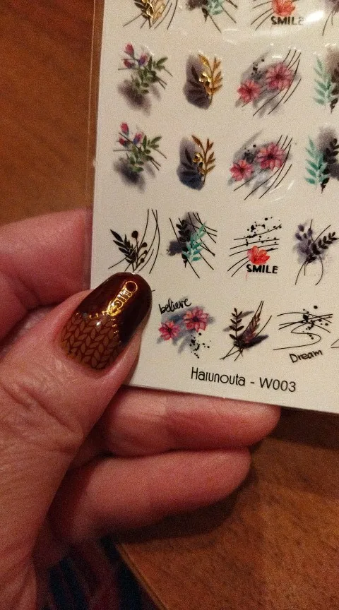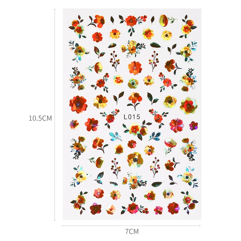 3D наклейки для ногтей синие и золотые Цветочные листья переливающиеся Красочные цветы наклейки для ногтевого дизайна слайдеры переводные наклейки для дизайна ногтей