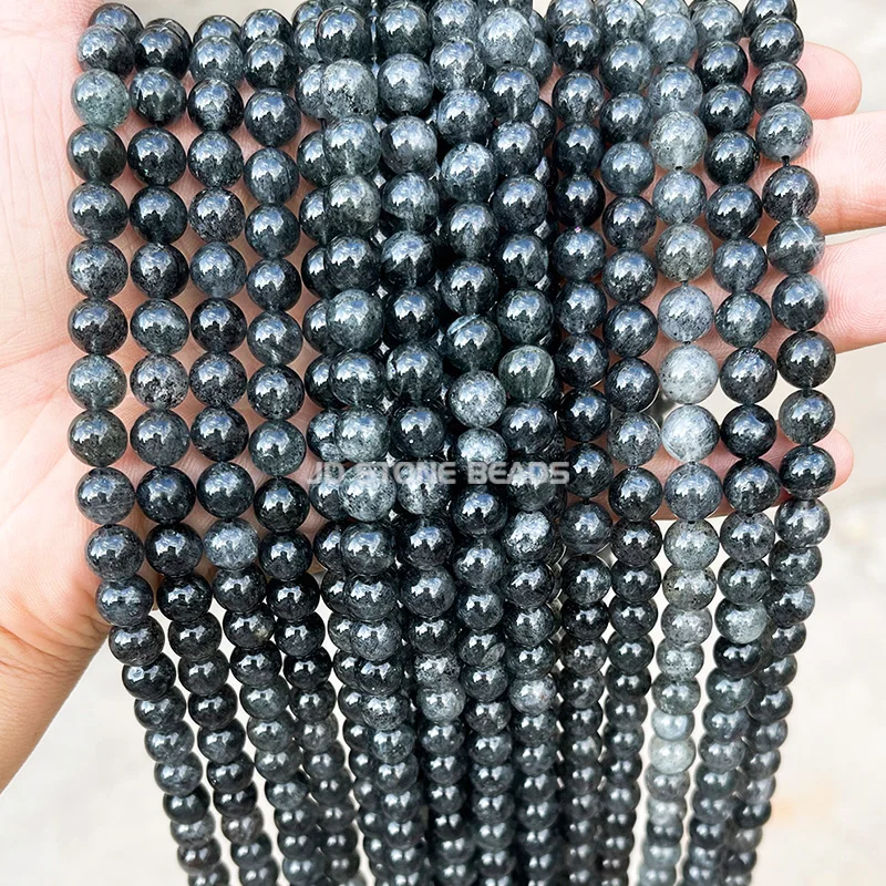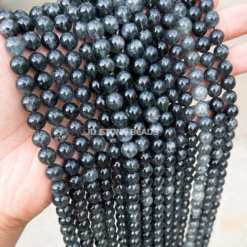 Круглые бусины из драгоценных камней, темный черный лунный камень, ...