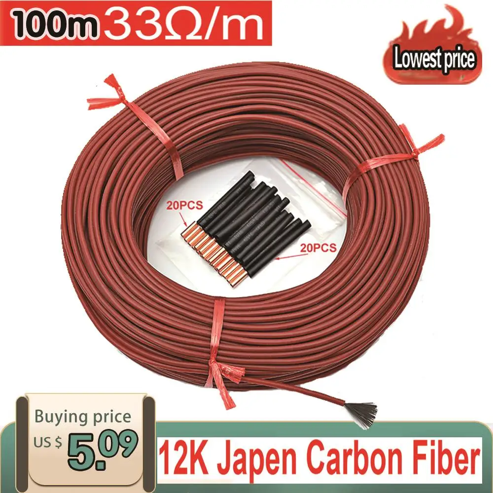 Резиновый нагревательный кабель из углеродного волокна, 5-220 В-300 В, 12K, 33 Ом