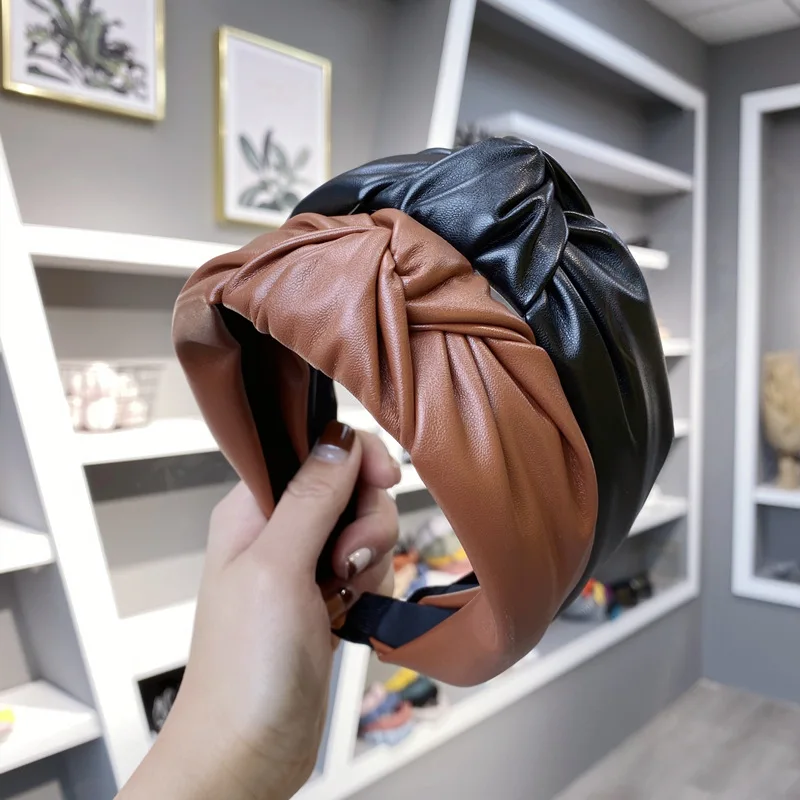 2021 винтажная ободок из искусственной кожи, ободок, аксессуары для волос, ободок с узлом для девочек, ободок, Женский ободок, диадема