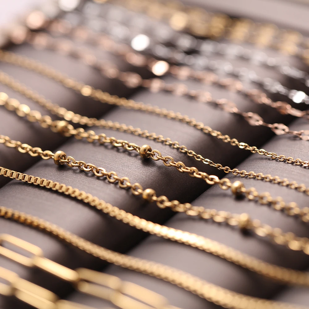 Золотая цепочка из нержавеющей стали для женщин, длинная цепочка, чокер для мужчин, воротник, кружевная подвеска сделай сам, серебряный цвет, шнур, застежка-лобстер