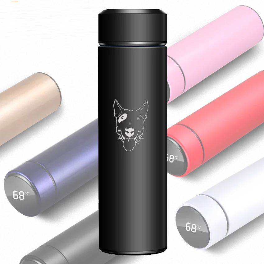 С бультерьером собакой изготовленным на заказ логосом чашка Термальность вакуумный Нержавеющаясталь бутылка Смарт стакана воды во время езды в автомобиле бутылка для воды, чая термос