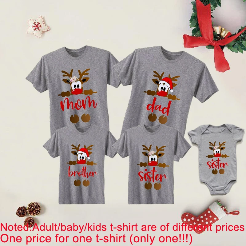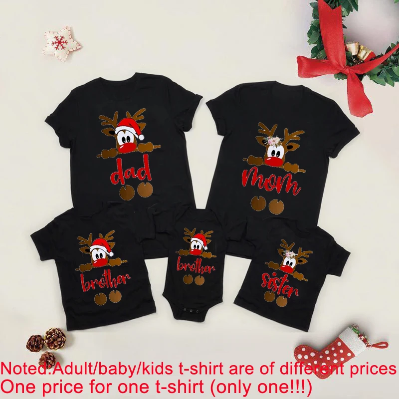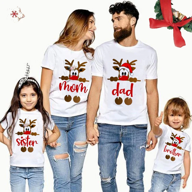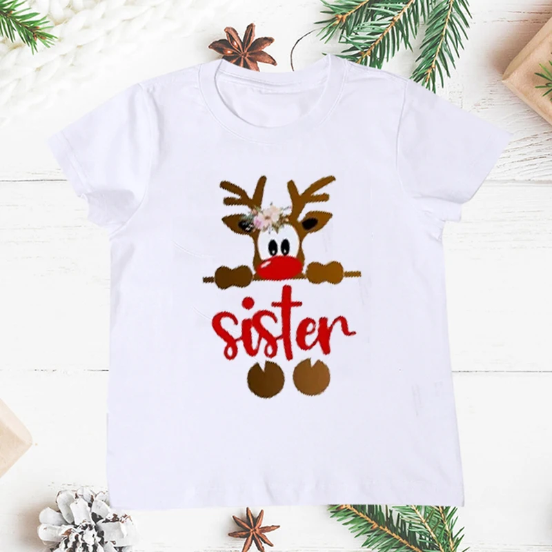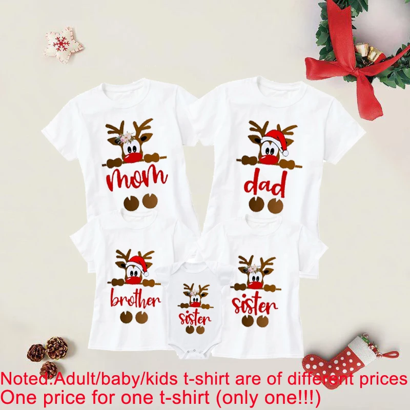 Рождественская семейная одежда для родителей и детей, новинка, популярная модная повседневная футболка с коротким рукавом и изображением оленя, мультяшная мама, папа, дети, малыши