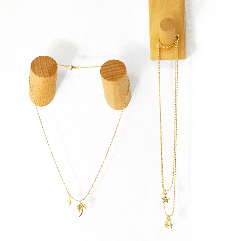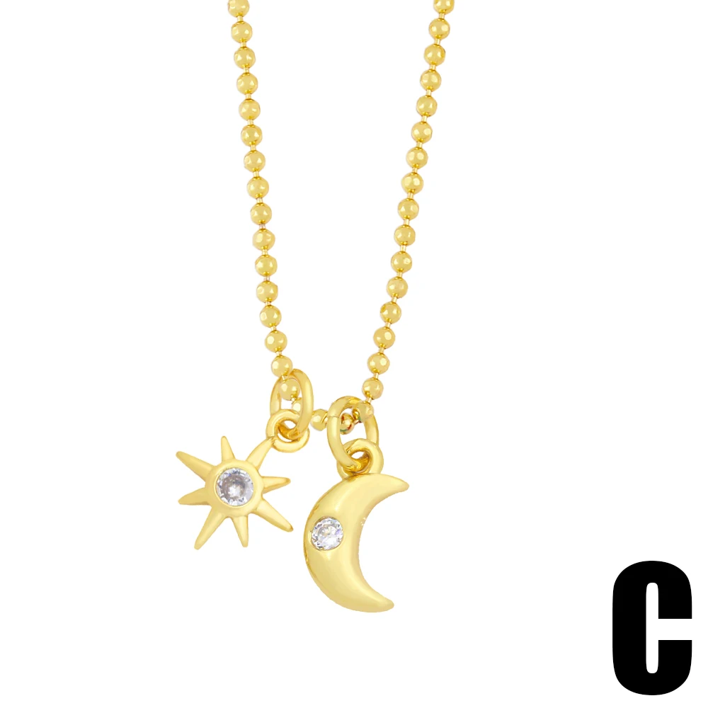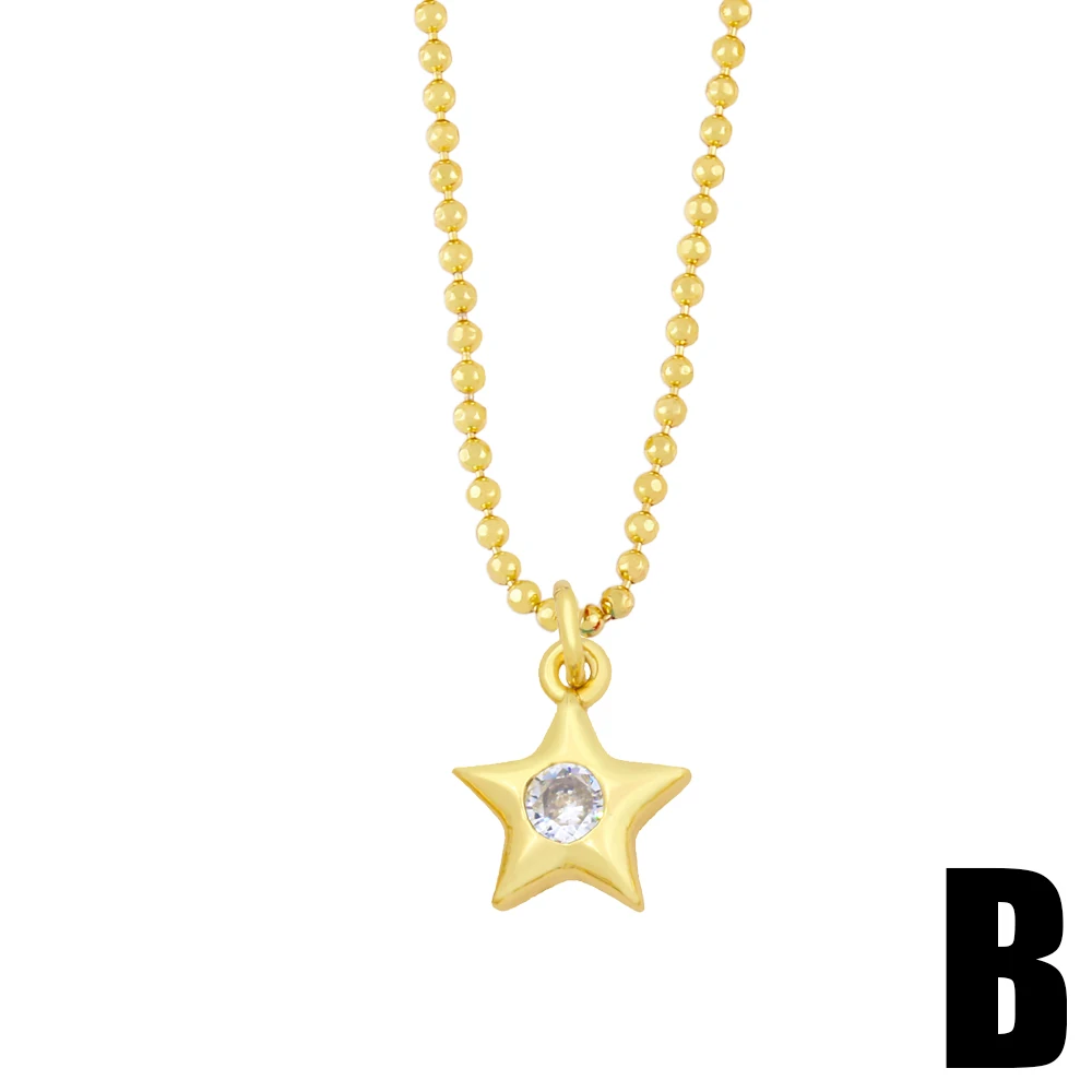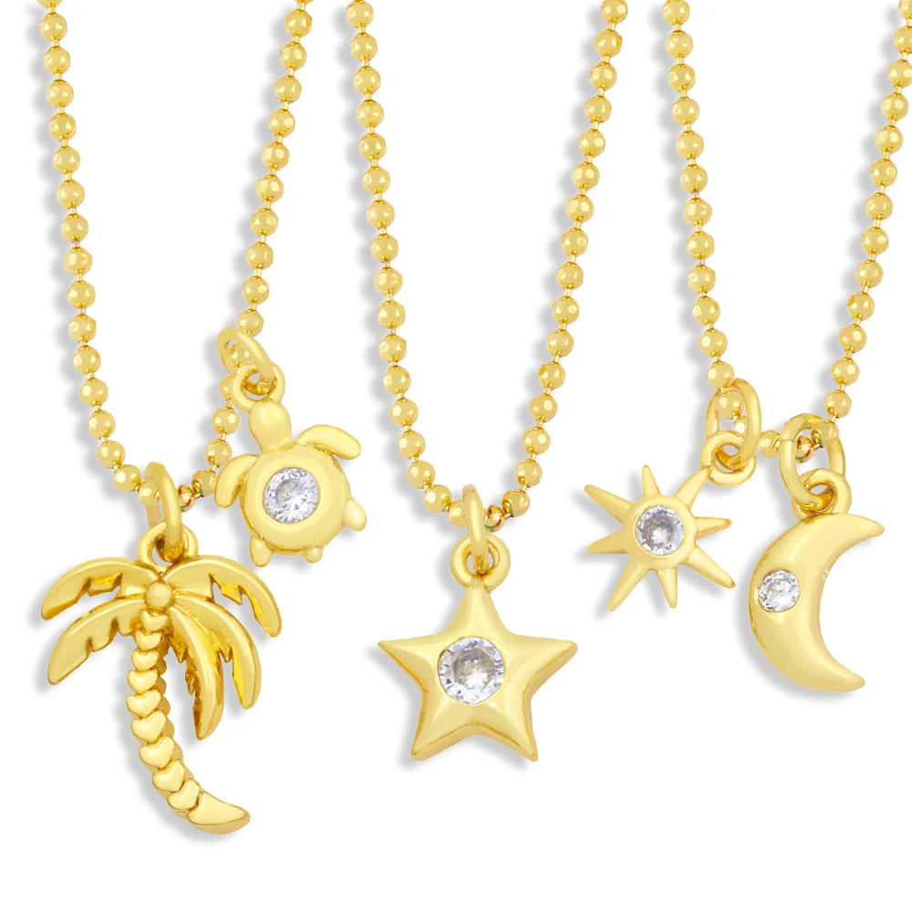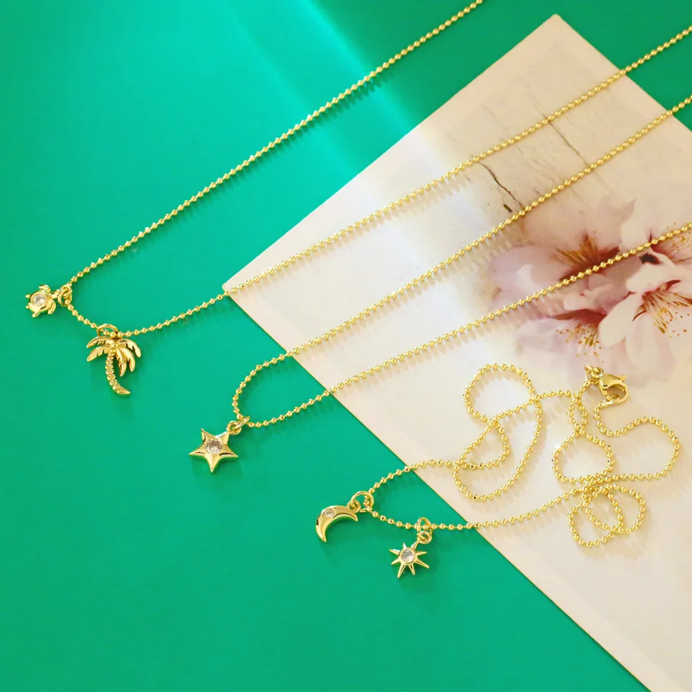 Ожерелье FLOLA цепочка с золотой бусиной Moon and Star, медный циркон, белый камень, черепаха, кокосовое дерево, подвеска для девочек, ювелирные изделия nkez22