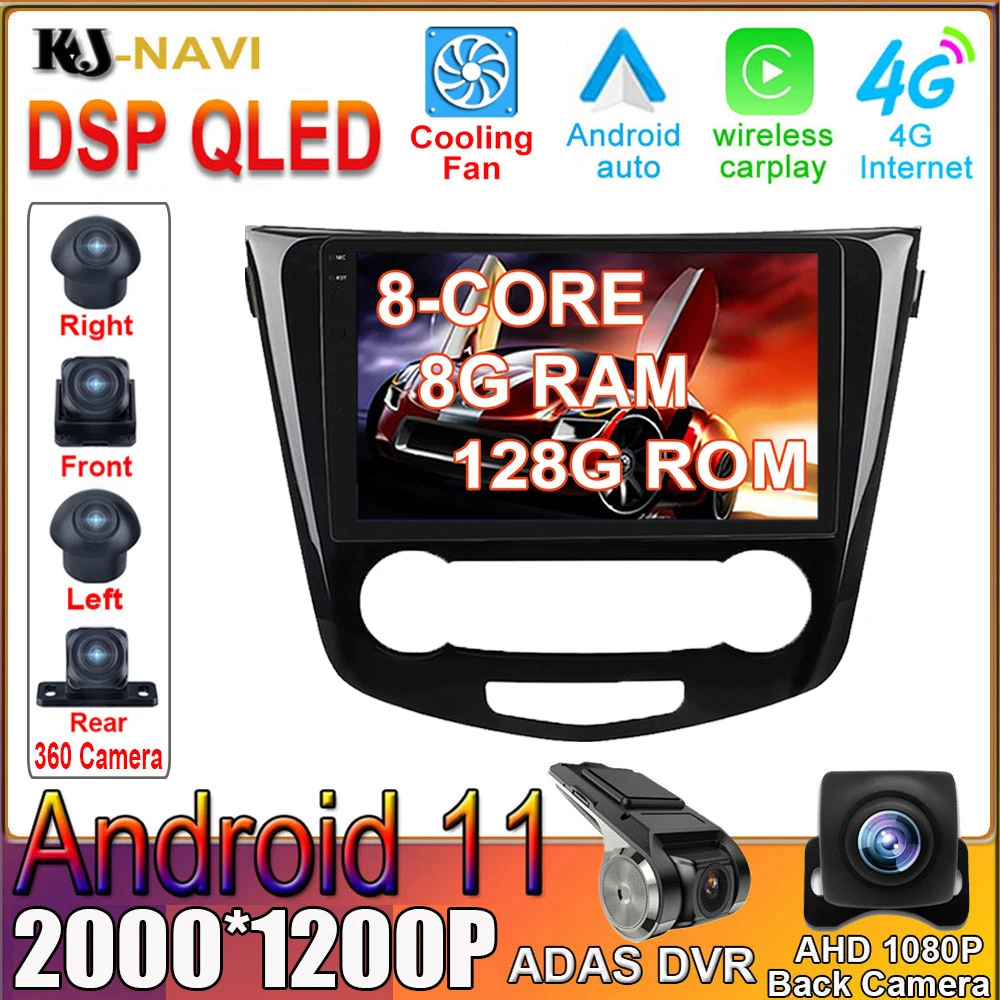 Автомобильный мультимедийный видеоплеер для Nissan X-Trail Xtrail 3 T32 2013 - 2017 Qashqai 2 J11 Andriod 11, навигация, радио, SWC, FM