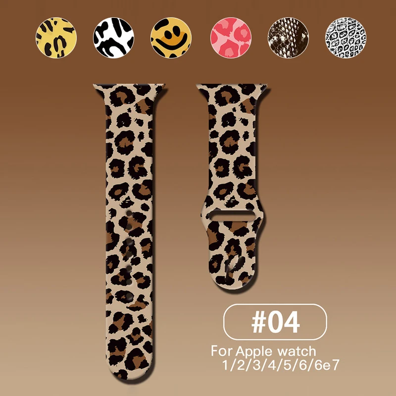 Браслет с леопардовым принтом для Apple Watch Band 44 мм 40 мм 38 мм 42 мм ремень для iWatch Series 6 SE 5 4 3 2 1 Женский силиконовый ремешок 7 41 мм 45 мм