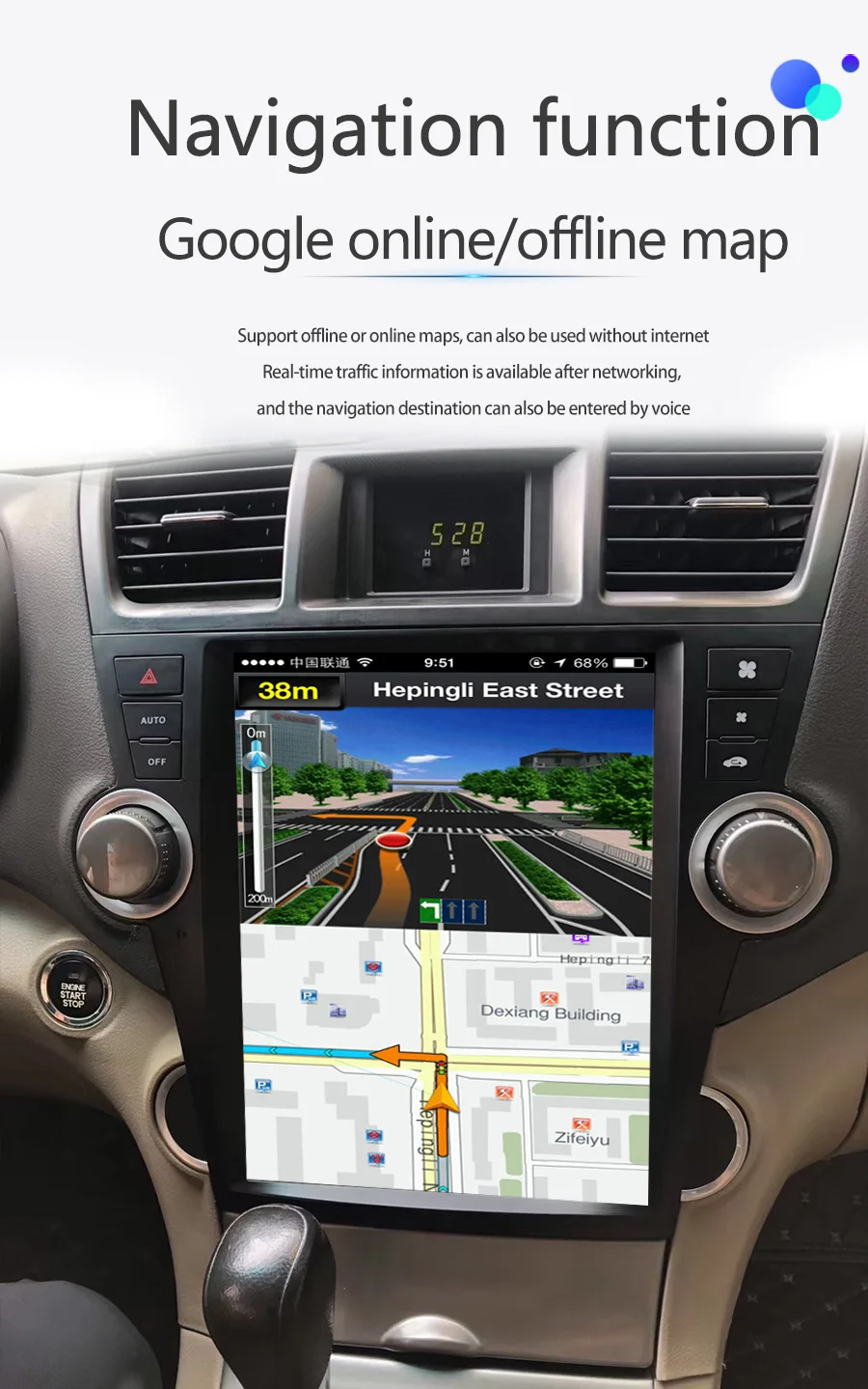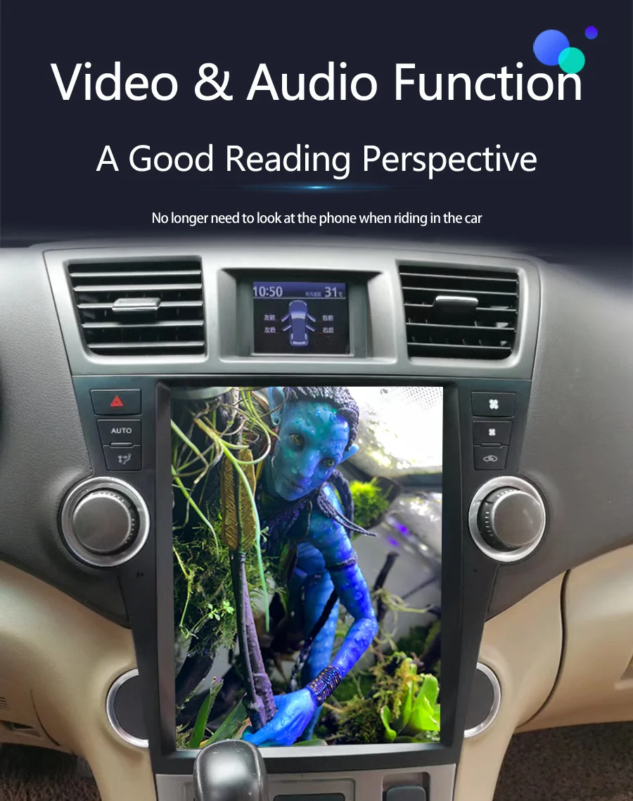 12 дюймов Android 11 автомобильный видеоплеер Радио стерео для Toyota Highlander 2007 - 2013 Tesla экран GPS мультимедийный Carplay головное устройство