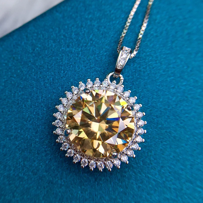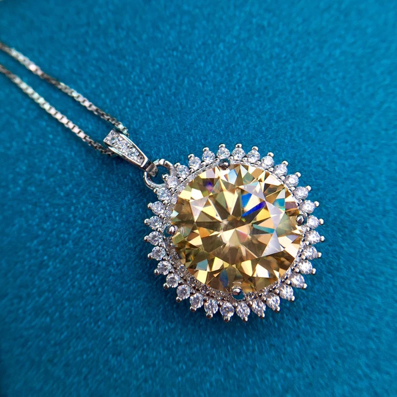 Кулон драгоценный камень: 5 карат 11 мм желтый моиссанит (прошел испытание алмаза + GRA сертификат)