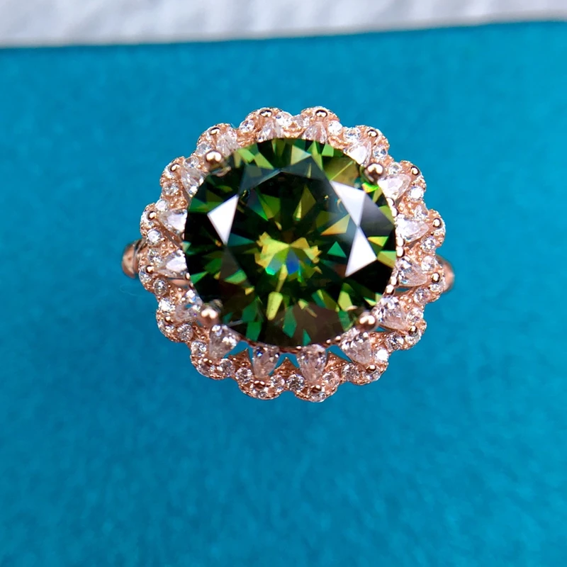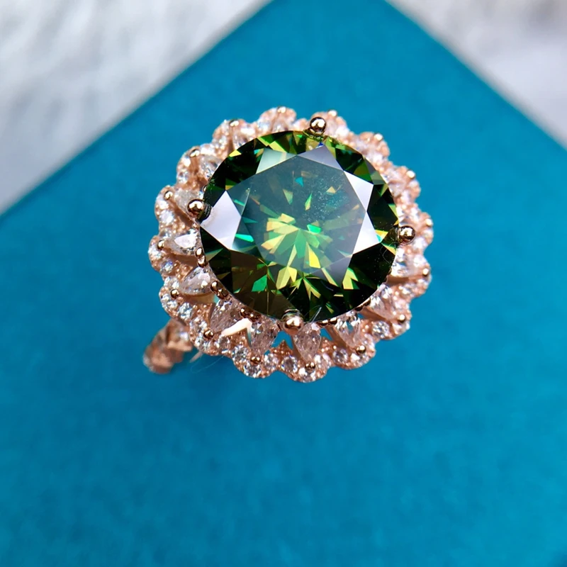 Роскошное зеленое моиссанитовое кольцо 5 карат 11 мм, прошедшее испытание бриллиантами, высокое ювелирное изделие, Свадебные вечерние юбилеи