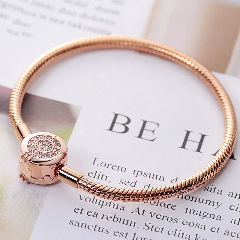 Оригинальный женский серебряный браслет со змеиным плетением, блестящая розовая Золотая Корона, подвески Pand, бусы-клипсы, Женские Ювелирные изделия