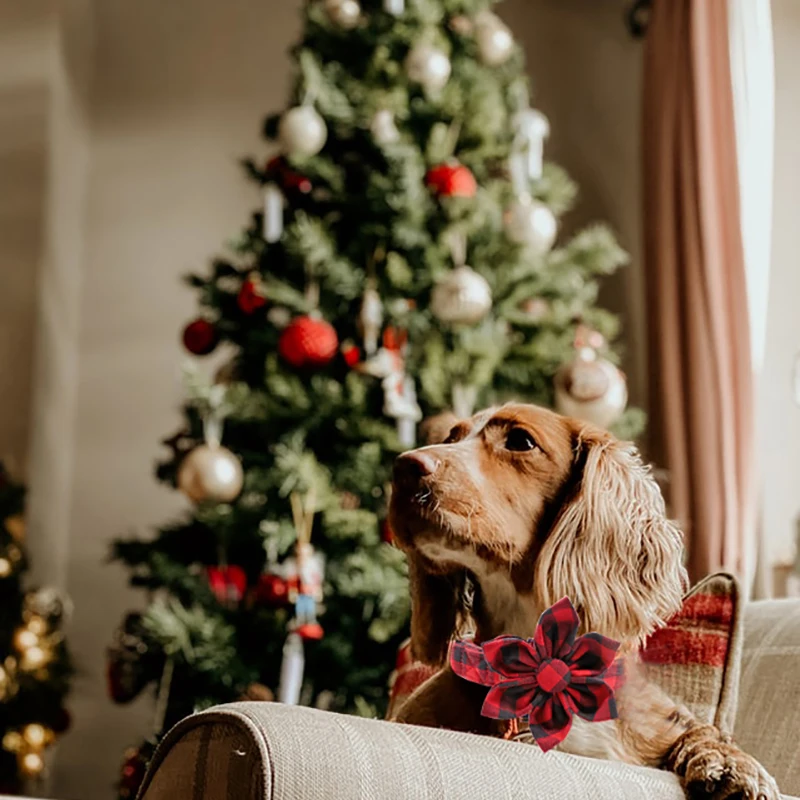 Уникальный стильный Рождественский собачий ошейник с лапами и галстуком-бабочкой, хлопковый ошейник для домашних животных в красную и черную клетку для больших искусств