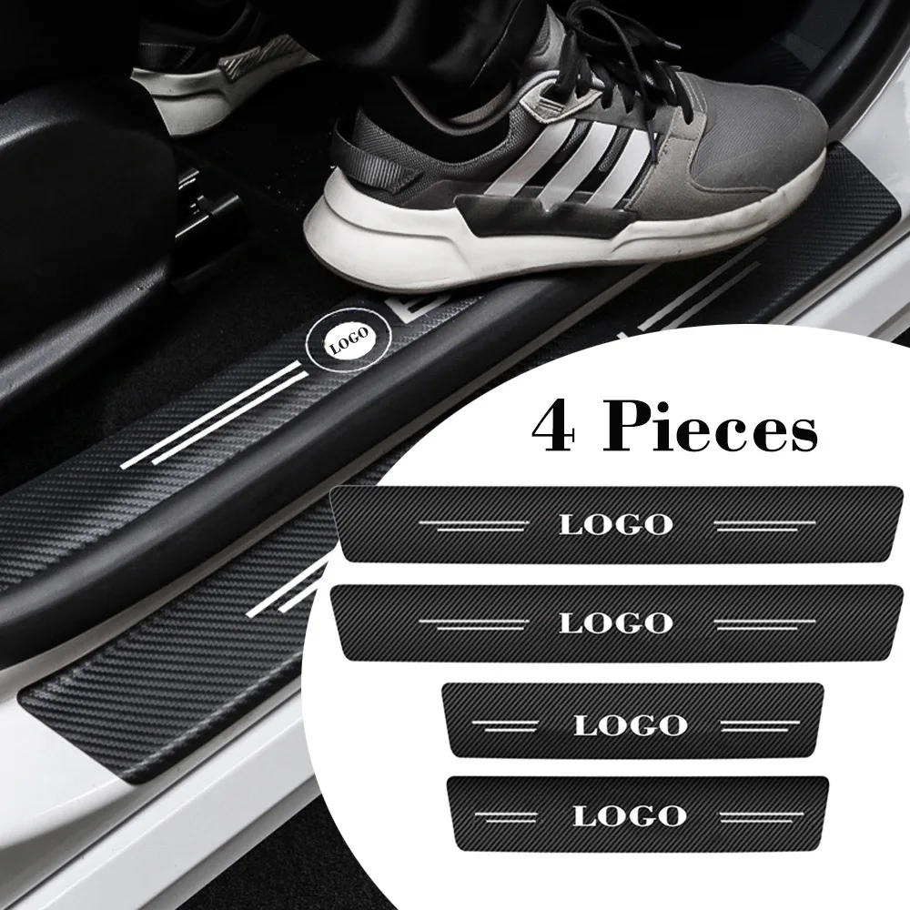 4 шт., наклейки на дверь из углеродного волокна, кожаный порог, лог...