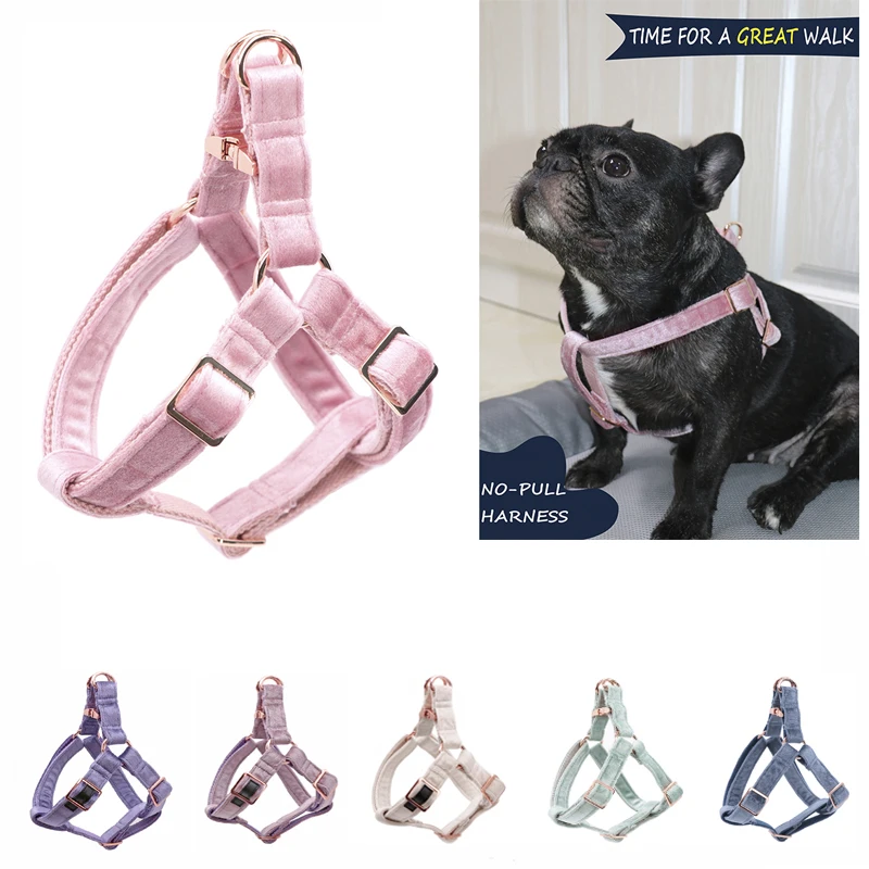 Розовая бархатная шлейка для собак, базовый поводок для собак с регулируемой пряжкой, бархатная шлейка для домашних животных для маленьких, средних и больших собак