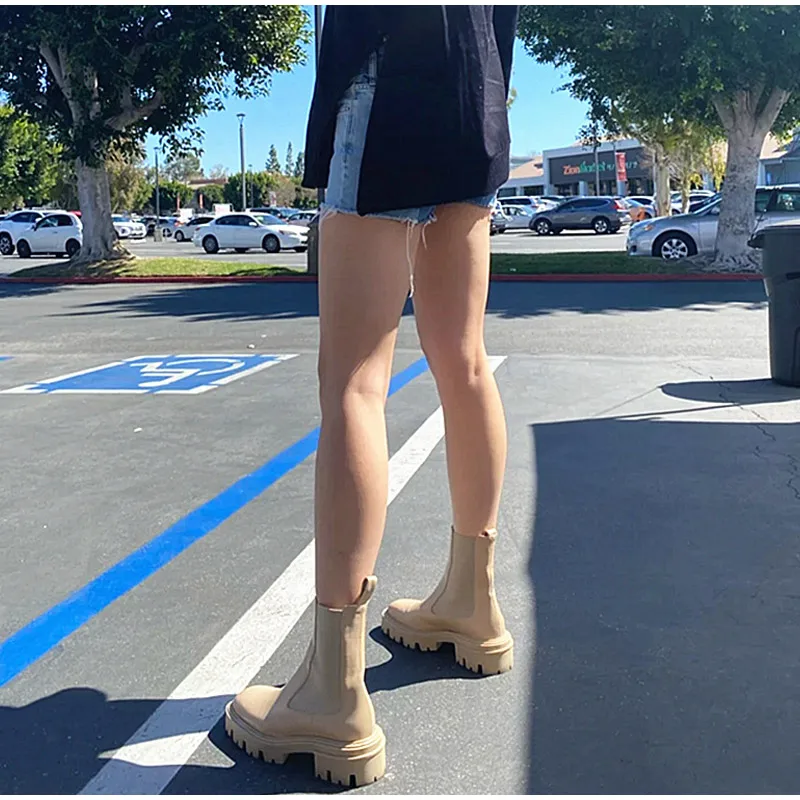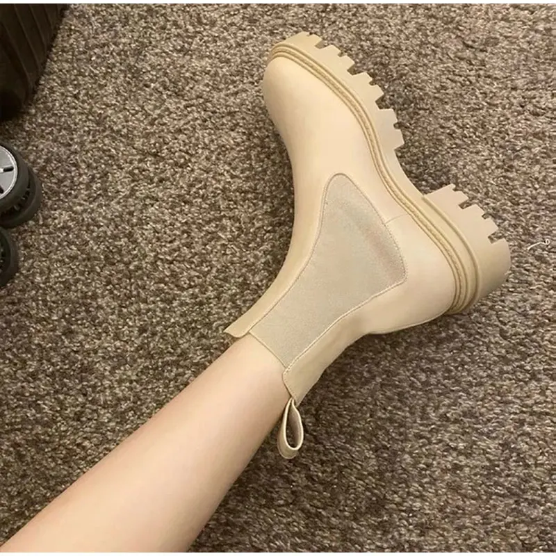 Женские ботинки челси на платформе и блочном каблуке, из микрофибры