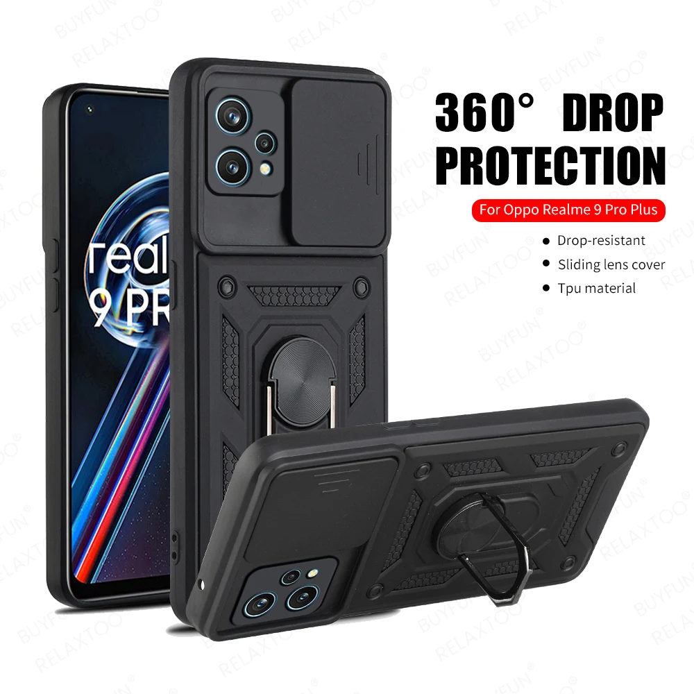 Бронированный металлический чехол для Oppo Realme 9i, чехол-держатель с кольцом для Realme 9i 8i 8 9 Pro Plus V13 5G C25 C25s C21, чехол с выдвижным окном