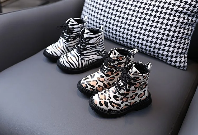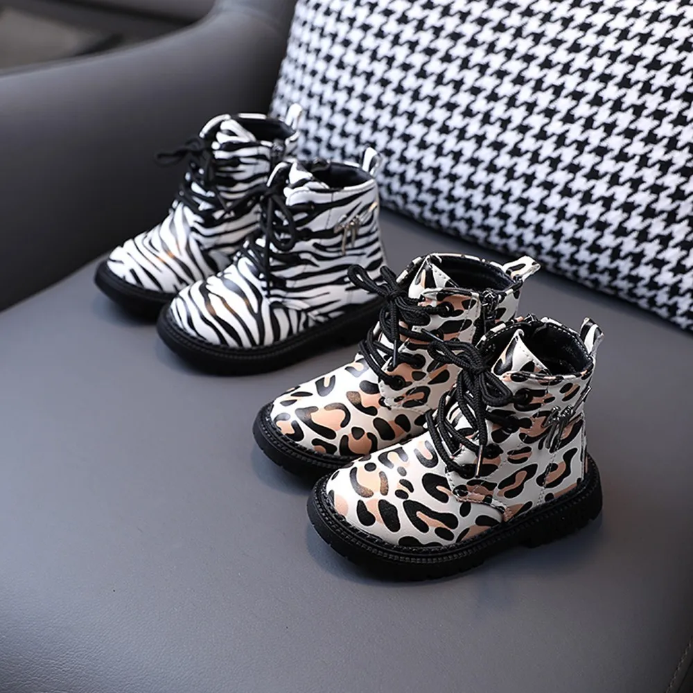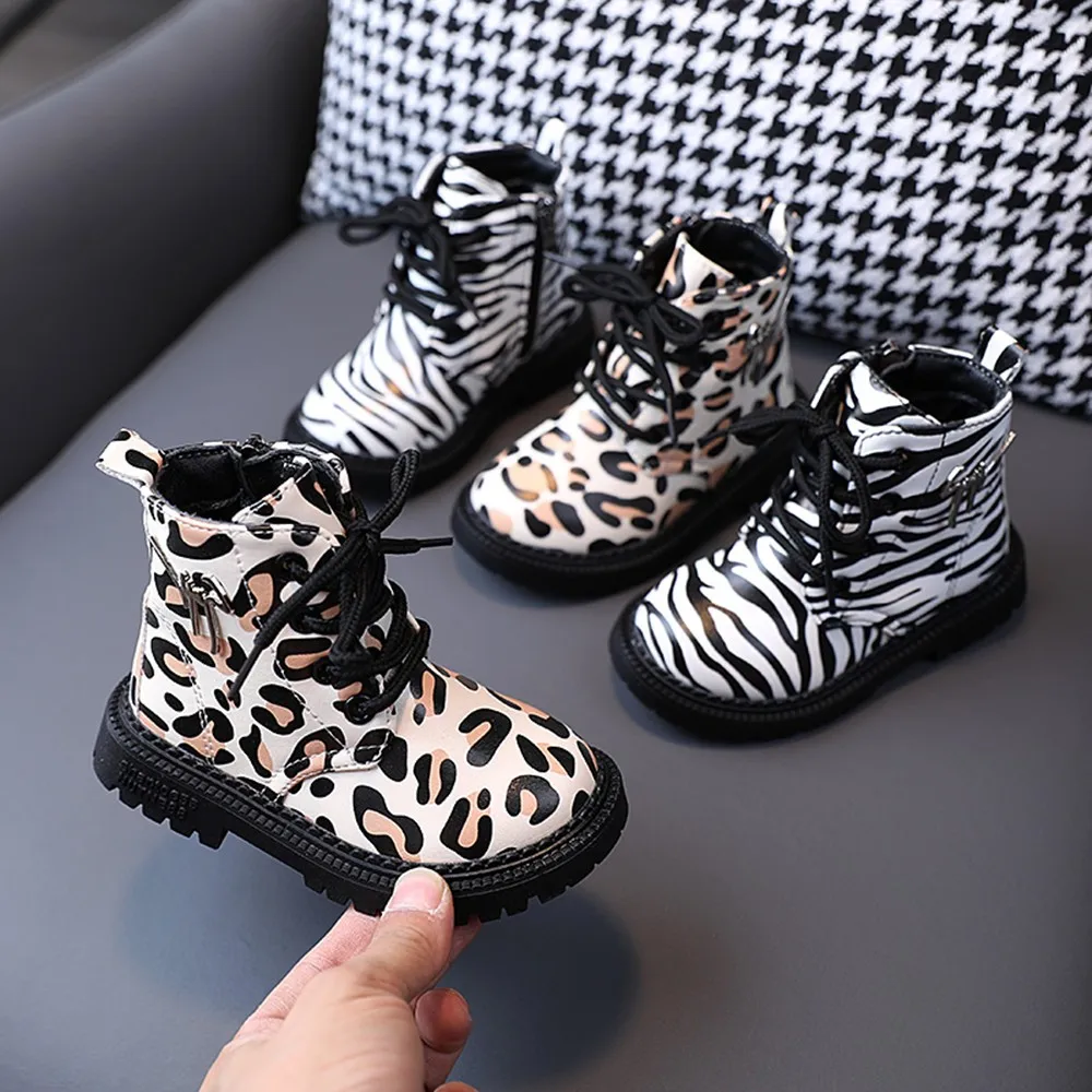 Ботильоны Детские с леопардовым принтом зебры, модные ботинки мартинсы для мальчиков и девочек, удобная Всесезонная нескользящая обувь для младенцев, 21-30