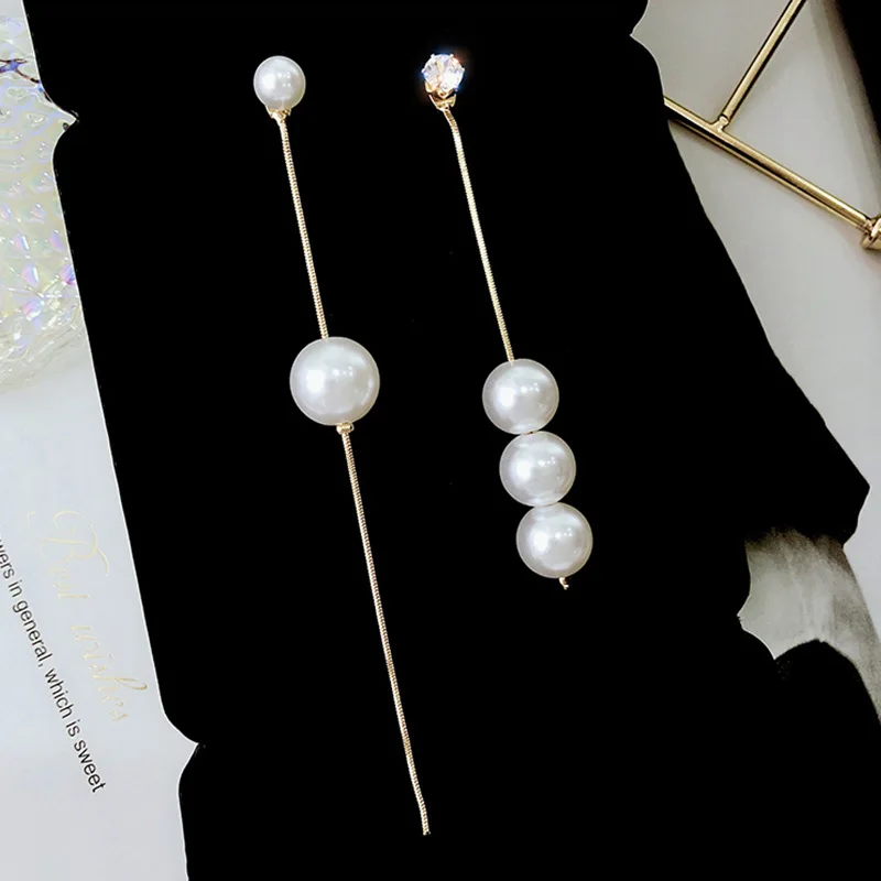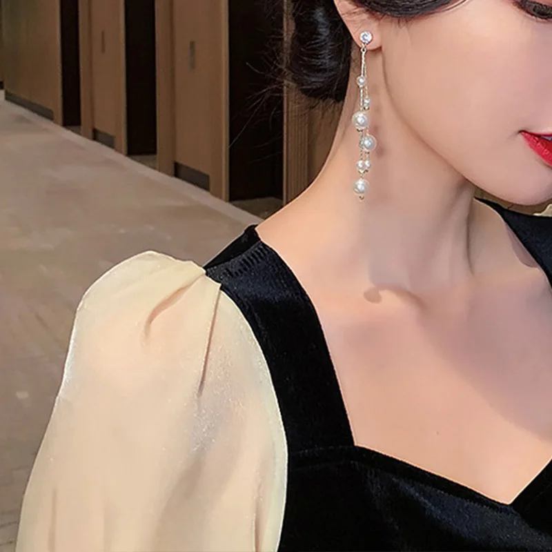Корейские модные длинные висячие серьги Стразы с жемчугом для женщи...