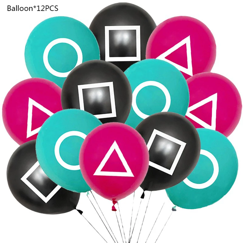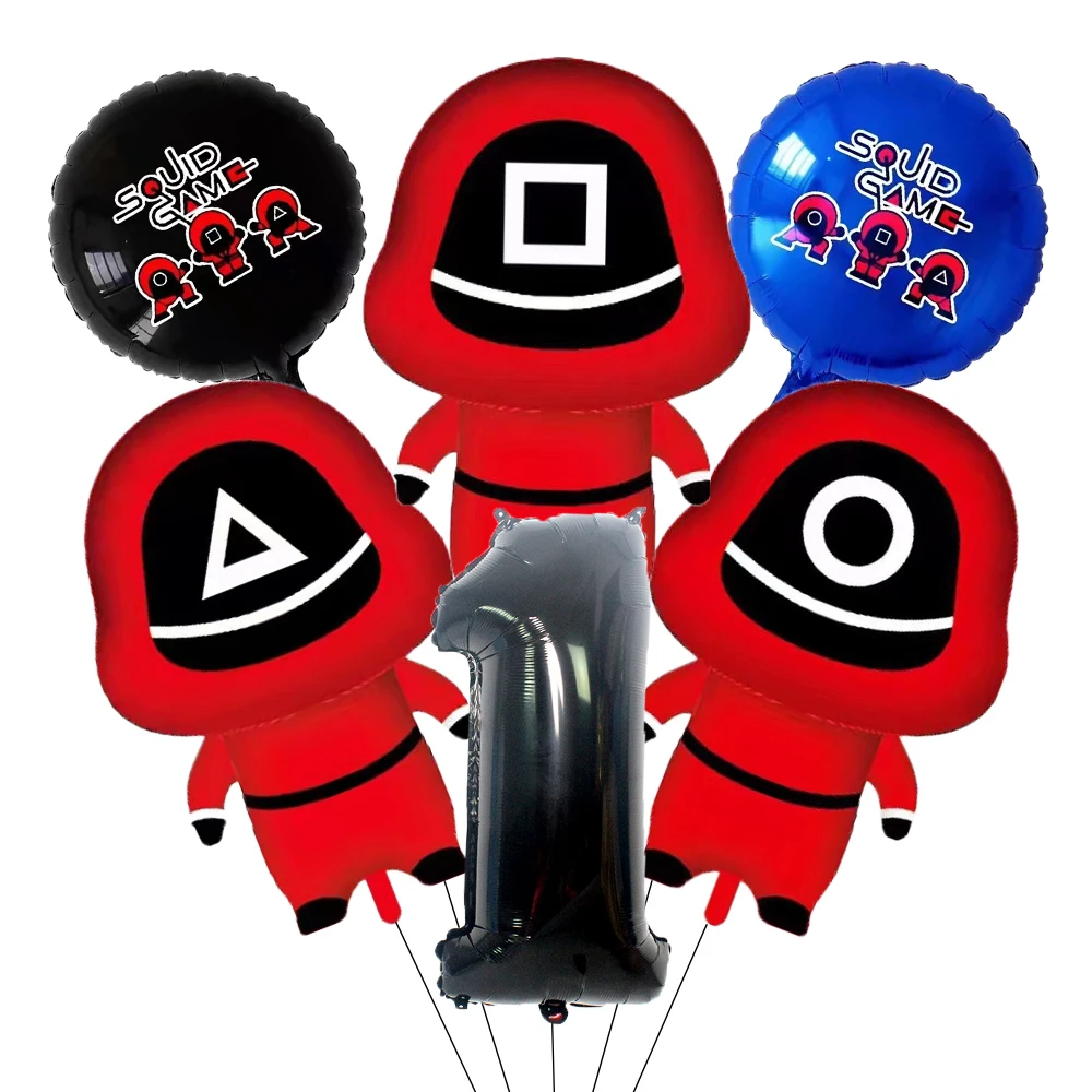 Набор латексных воздушных шаров, игра кальмар, украшения для дня рождения, детский праздник, топпер для торта, треугольная круглая маска, мужской воздушный шар