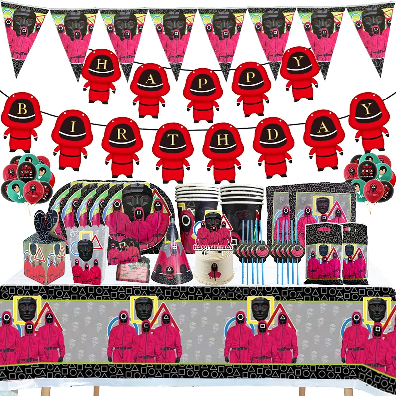 Игра кальмар, украшения для дня рождения, столовая посуда, конфетна...