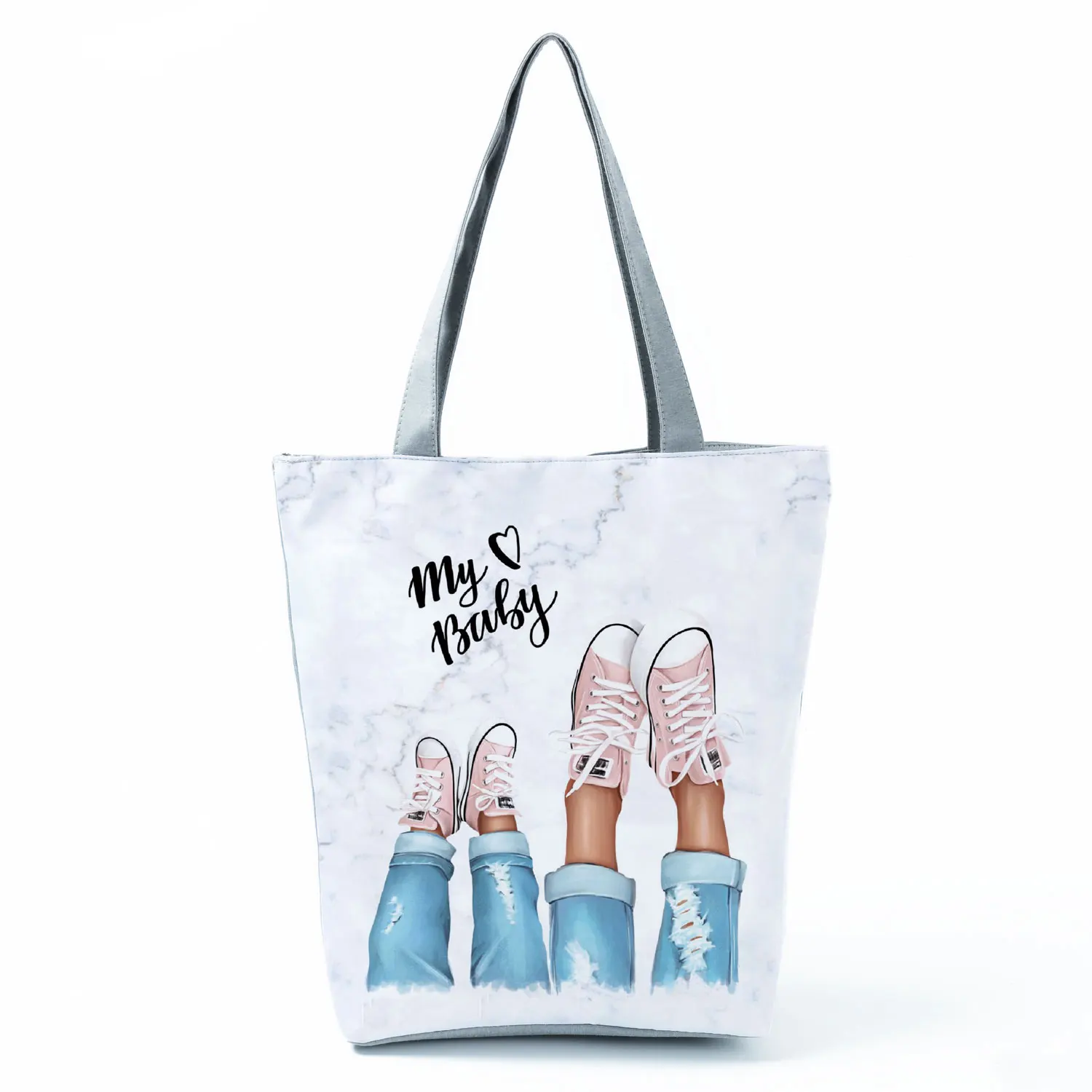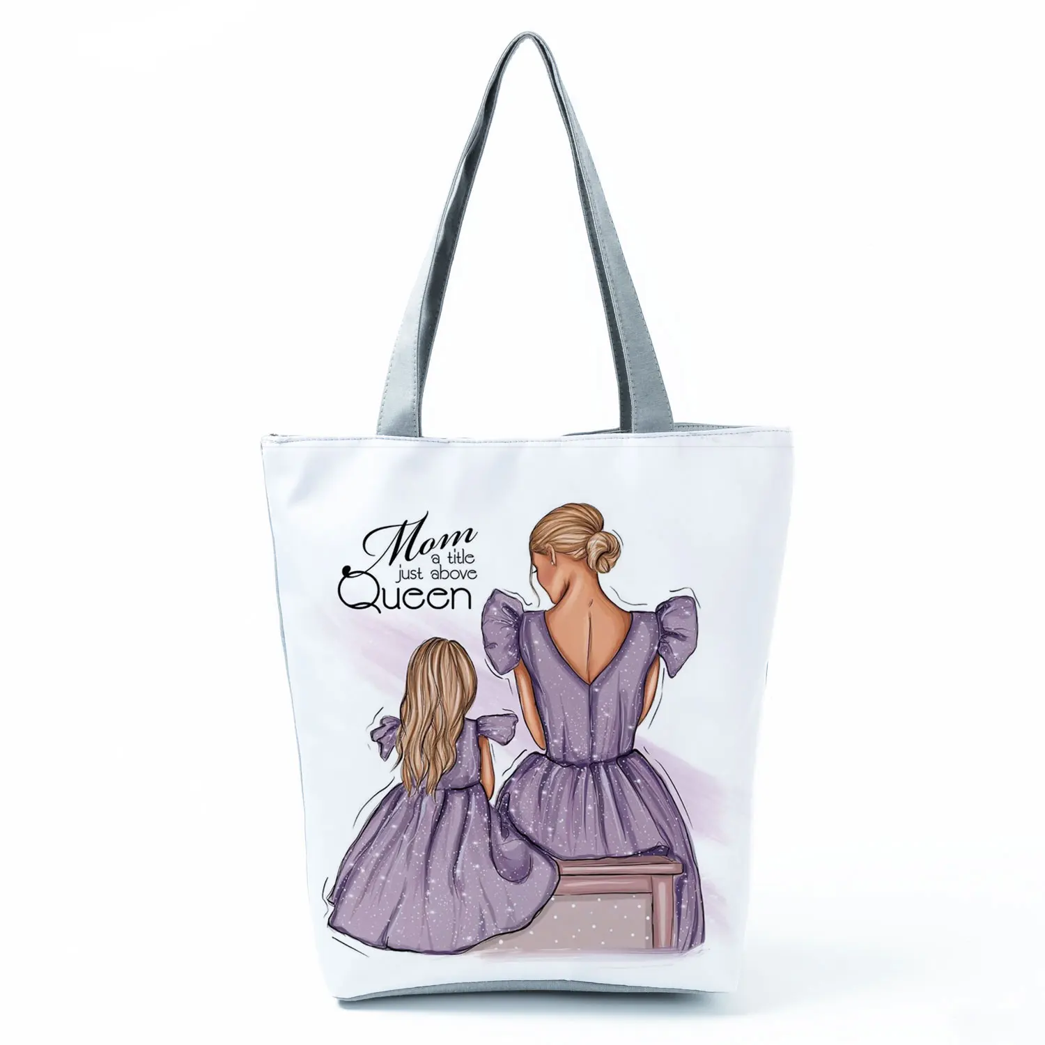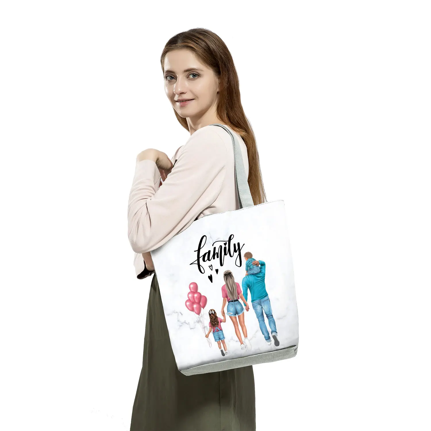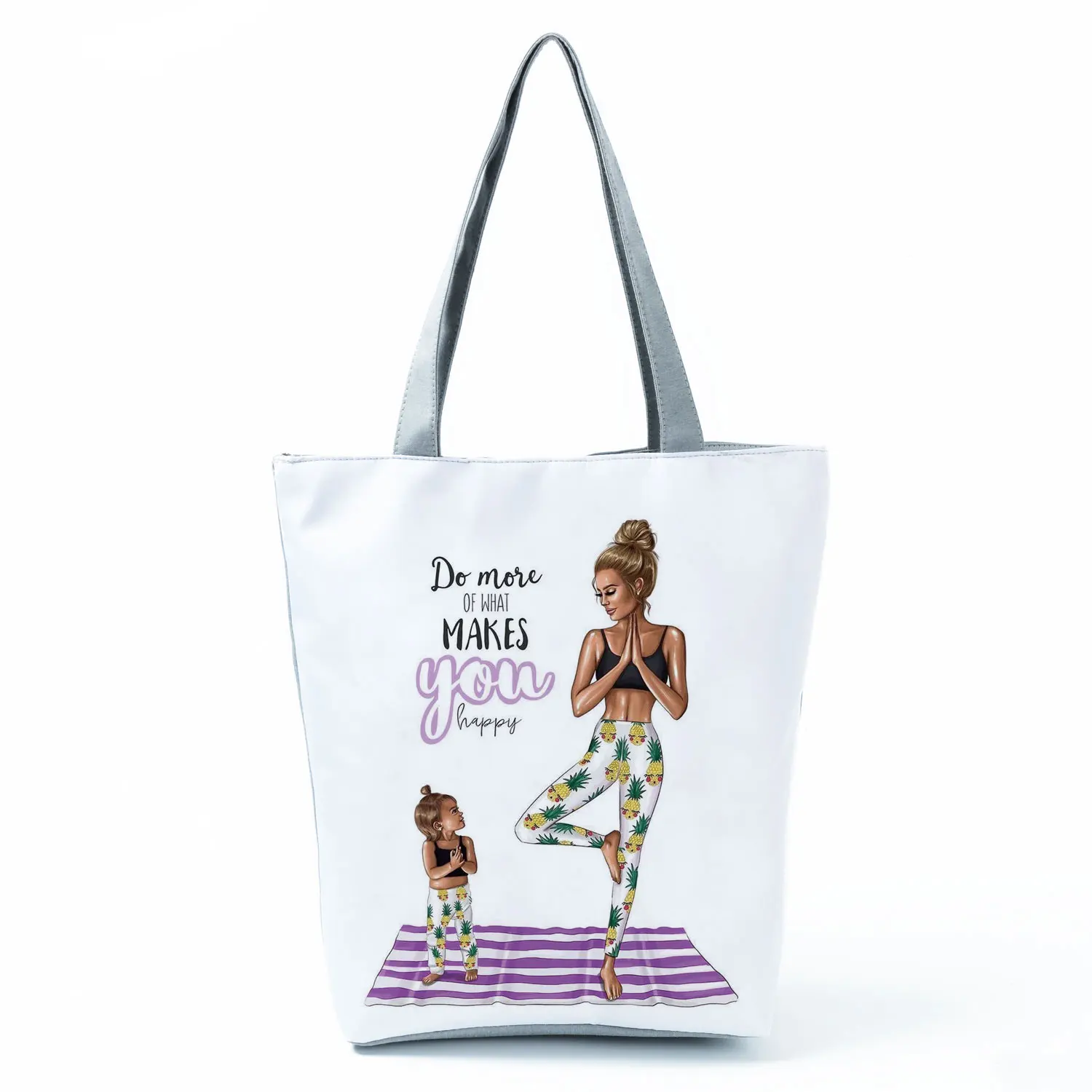Симпатичные льняные сумки-тоуты с мультипликационным принтом Super Mama, многоразовая сумка через плечо, складные Женские повседневные сумки для мамы и ребенка, женские тканевые сумки-тоуты