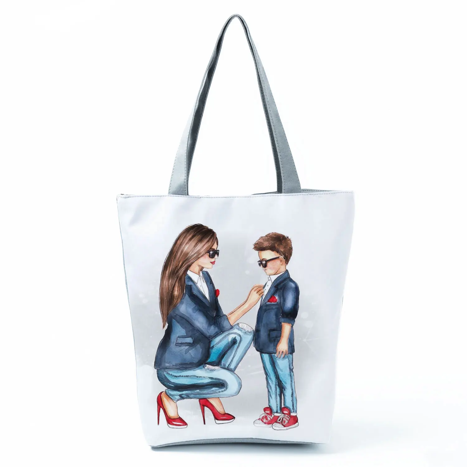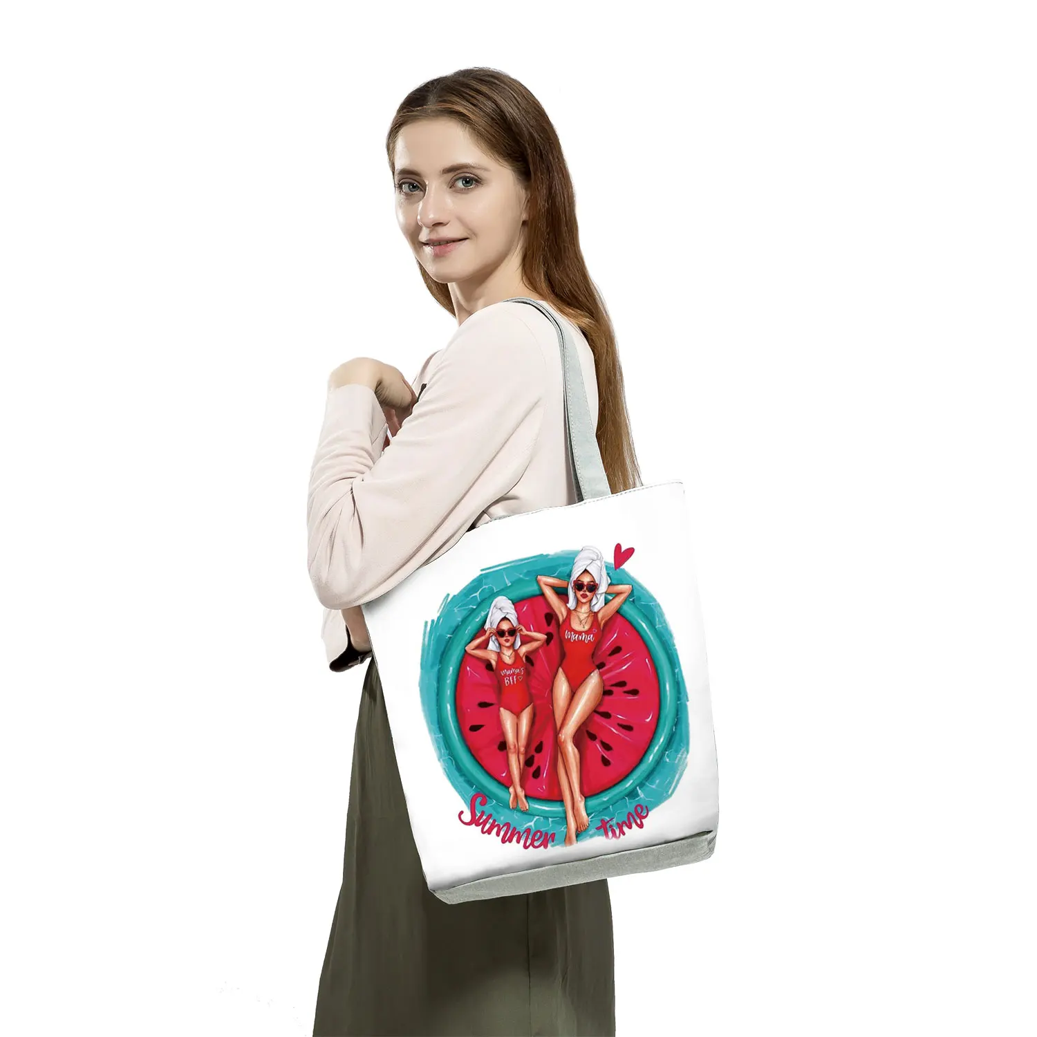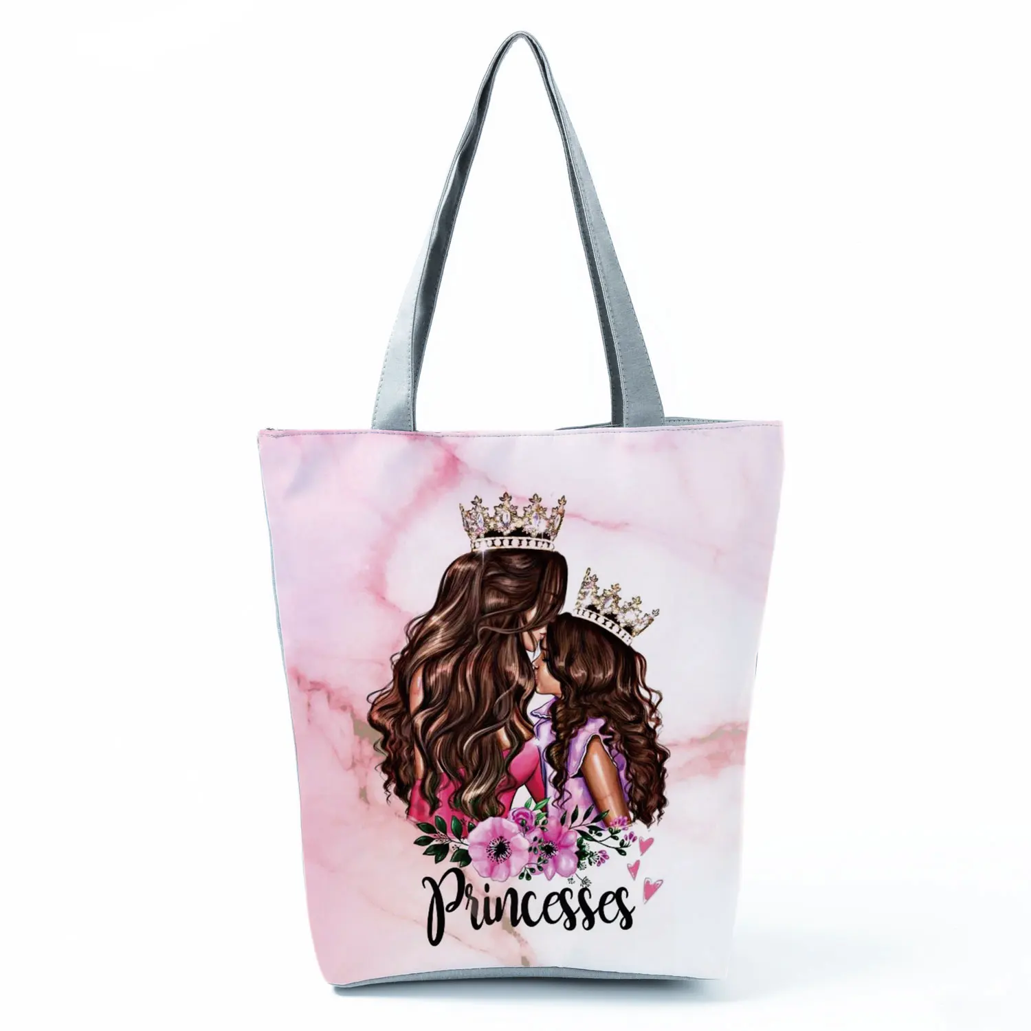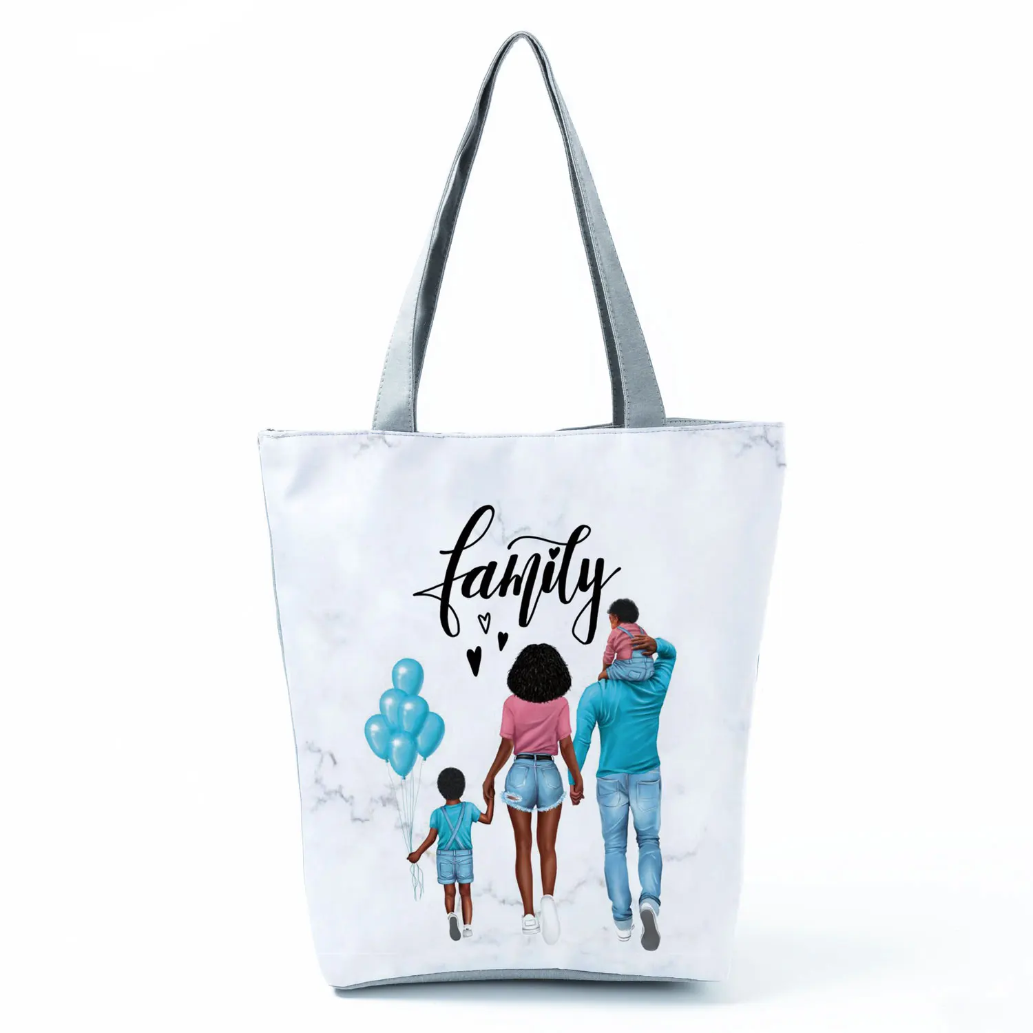 Симпатичные льняные сумки-тоуты с мультипликационным принтом Super Mama, многоразовая сумка через плечо, складные Женские повседневные сумки для мамы и ребенка, женские тканевые сумки-тоуты
