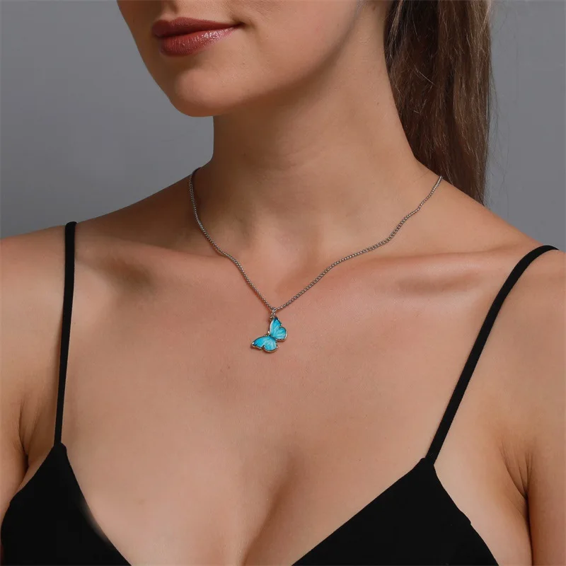 Женское ожерелье с подвеской в виде бабочки, с голубым градиентом