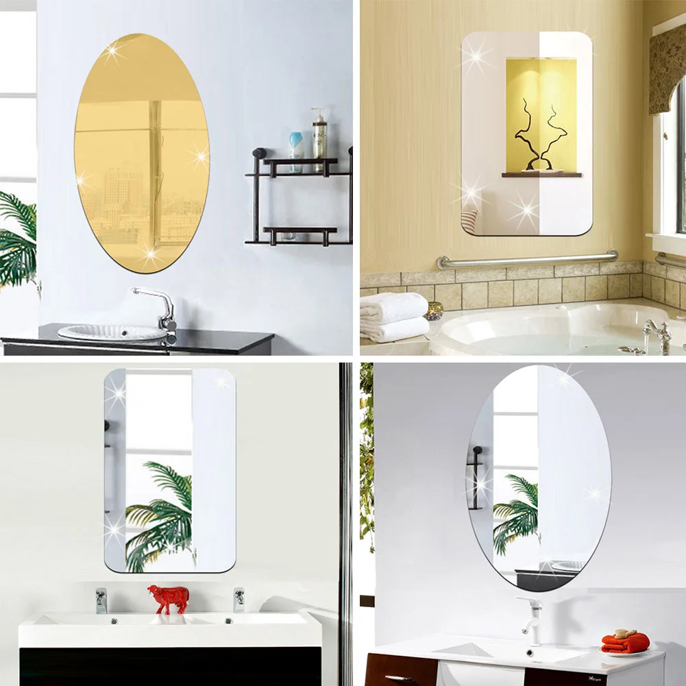 Настенные наклейки 3D зеркальный эффект съемный Прямоугольник Оваль...