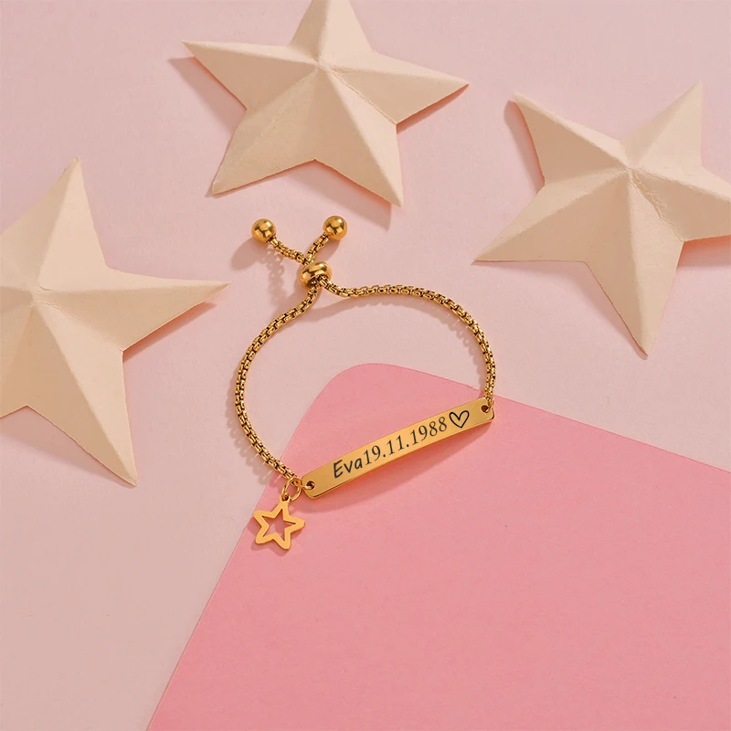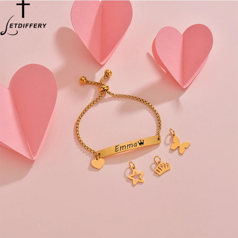 Letdiffery 2021 новый милый детский браслет с гравировкой Имя ID бар из нержавеющей стали для детей браслеты персонализированные именные украшения