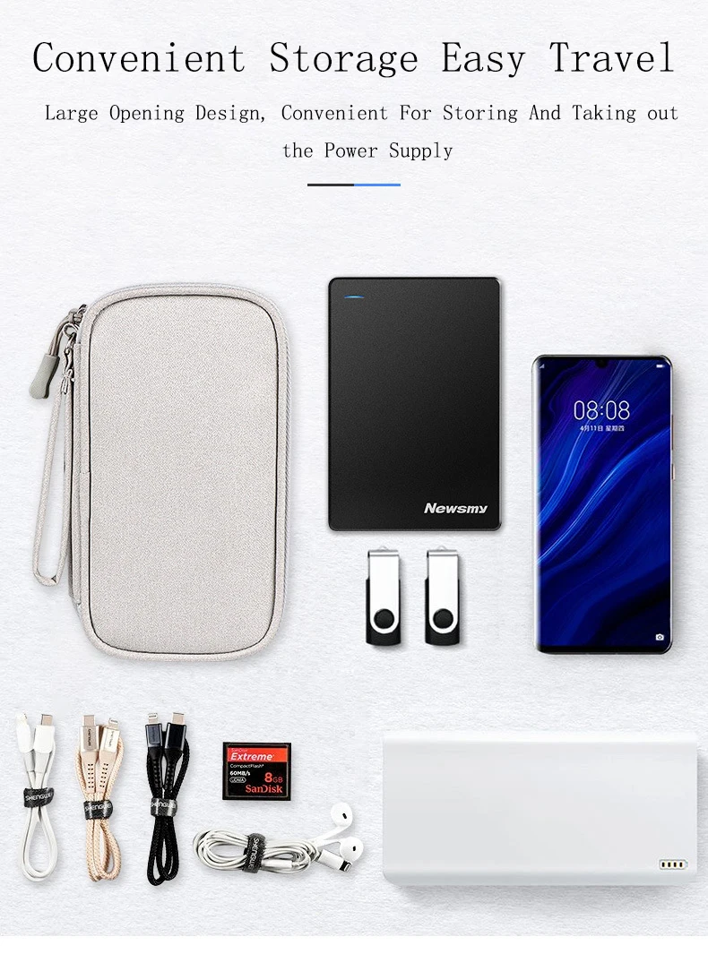 Органайзер для кабеля, сумка для хранения, сумка, водонепроницаемая дорожная сумка для USB-адаптера, зарядного устройства, провода, наушников, чехол, сумка для хранения внешнего аккумулятора