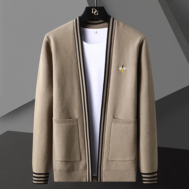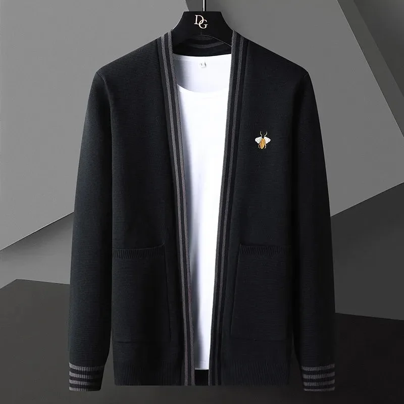 Высококачественный мужской вязаный кардиган, свитер, Новинка весна-осень 2021, повседневное корейское модное пальто с вышивкой в виде пчелы