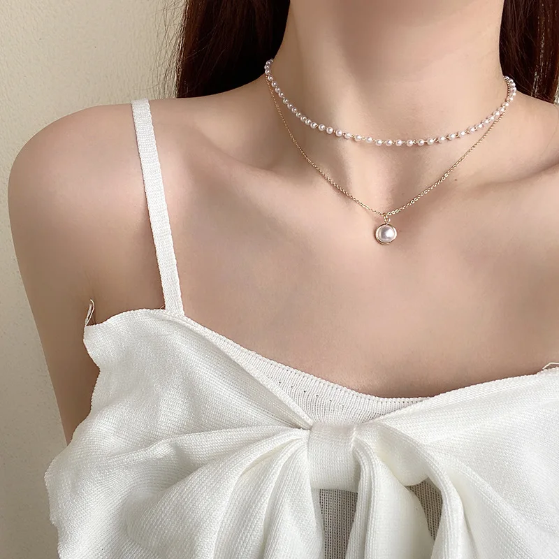 2021 Новое модное ожерелье-чокер с жемчугом Kpop, милая двухслойная...