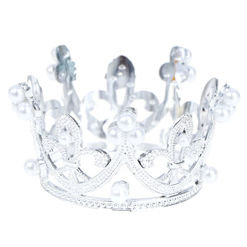 Мини-корона, украшение для торта, принцесса, Топпер, жемчужная тиара, детские украшения для волос для свадьбы, дня рождения вечерние украшение для торта
