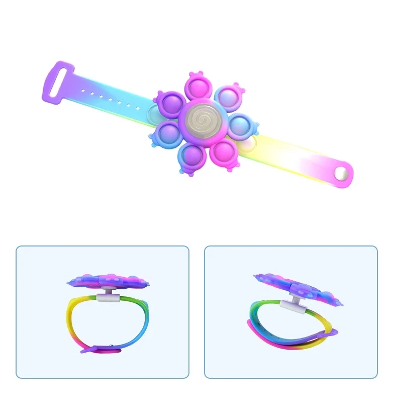 Этот модный браслет изготовлен из декомпрессионного силикона с пузырьками и вращающимся цветком, который позволяет снова и снова вращаться и прыгать! Снимает стресс, беспокойство, скуку, усталость и многое другое! Имеет красочный дизайн, который дает изюминку и причудливое прикосновение к вашему OOTD. Позволяет вам быть стильным, как вы хотите, наслаждаясь сенсорной стимуляцией, как пузырчатая пленка!
