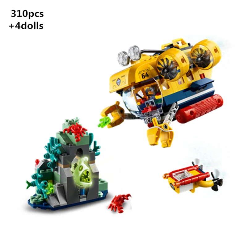Приключения в городе, ТВ, океан, исследование, база, подводная лодка, большой конструктор, кран, подводный Дрон, модель, кирпичи, детские игрушки, подарки