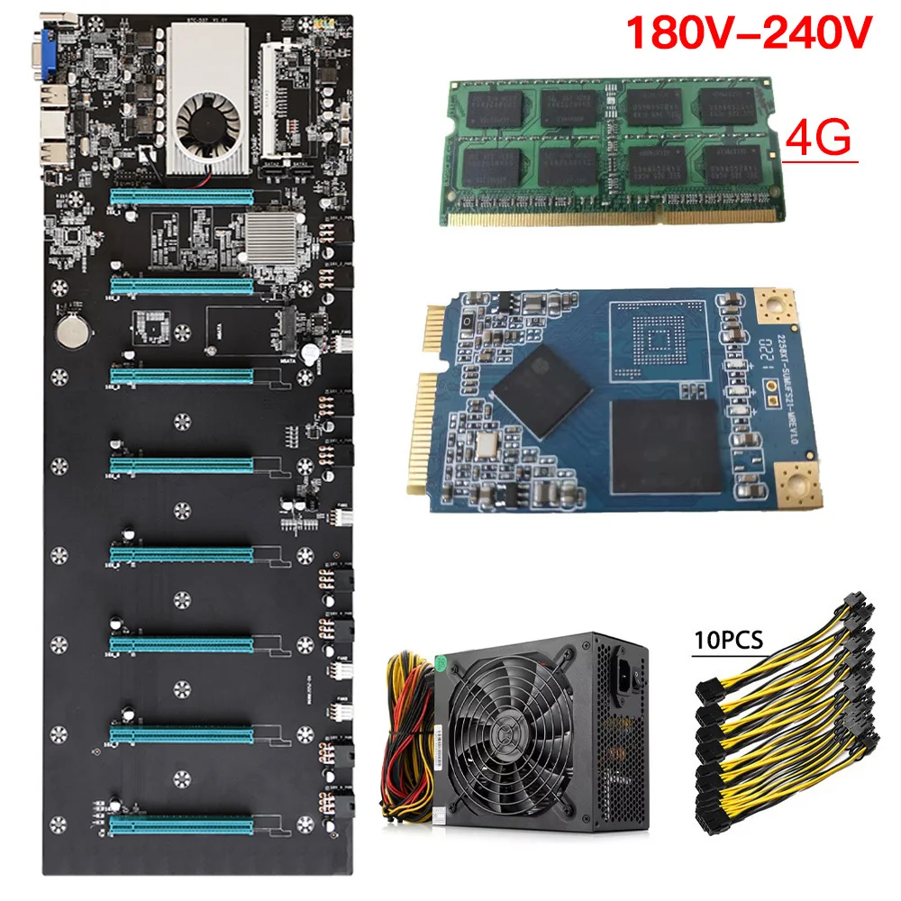 Материнская плата для горнодобывающей машины-1 шт.1 x источник питания 1850 Вт10 x PCI-E 8-контактный кабель питания1 x память (4G/8G)1 х mSATA SSD(128G)