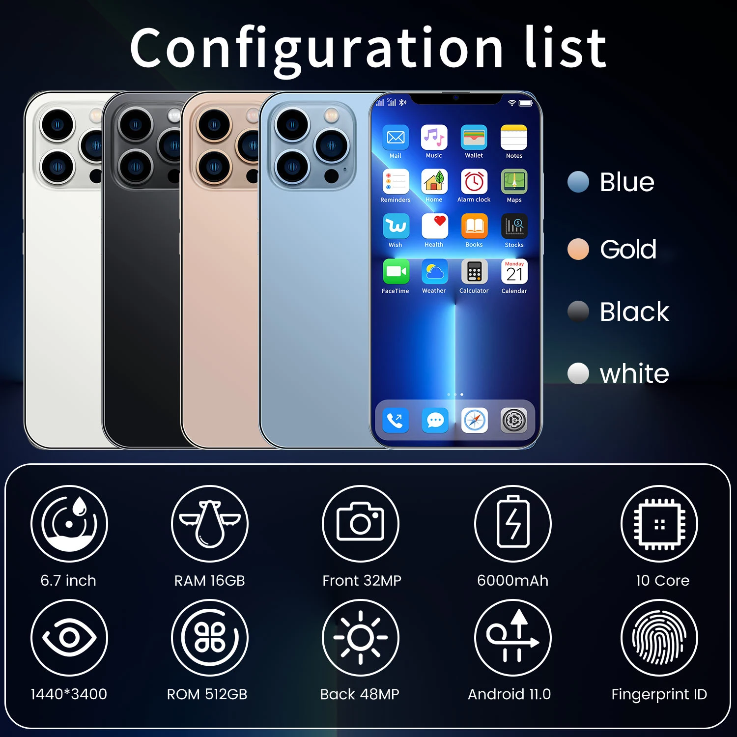 Телефон с экраном диагональю 6,7 дюйма, планшетом 12 Гб + 512 Гб, для Apple IPhone 13 Pro Max, Samsung, Huawei