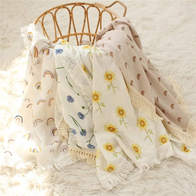 Детское муслиновое одеяло, Пеленальное Одеяло, детское одеяло с кисточками из органического хлопка, детское одеяло, Пеленальное Одеяло для новорожденных, одеяло для маленьких девочек и мальчиков