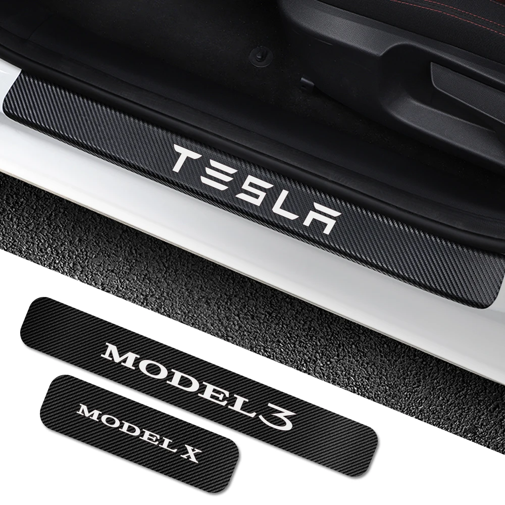 4 шт., декоративные наклейки на пороги автомобиля Tesla Model 3 S X Y P100D