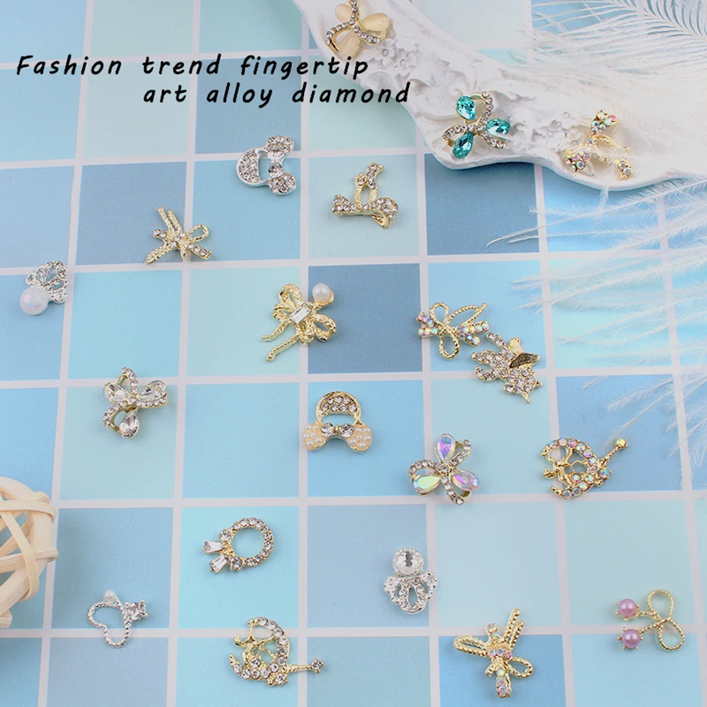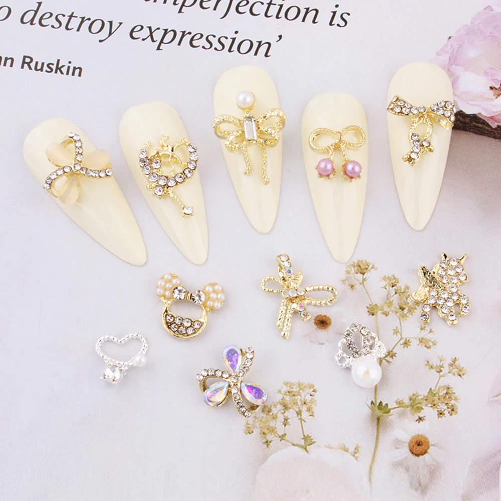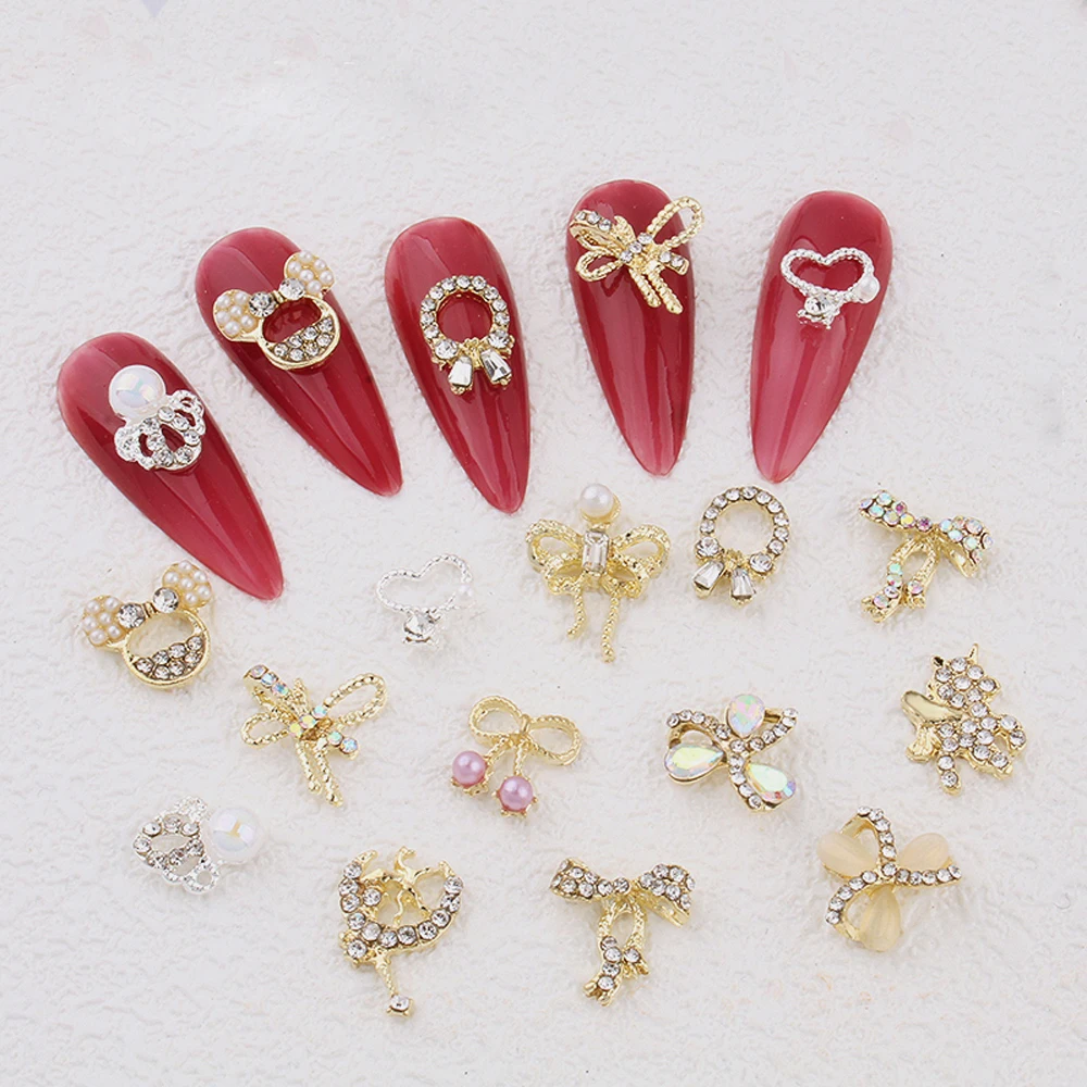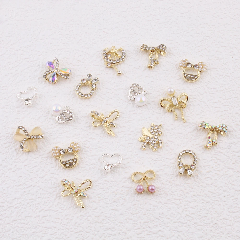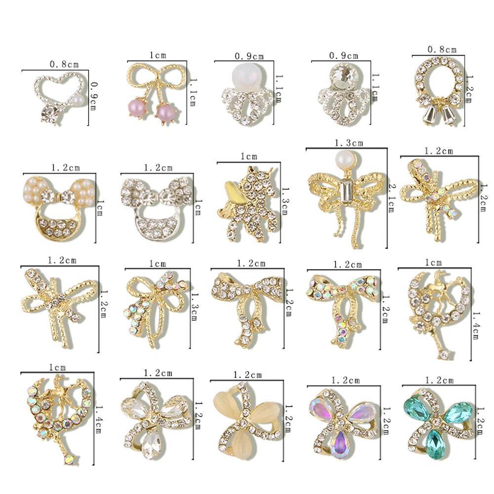 10 шт./пакет, много-форма, сплав, украшение для ногтей, бант, металлические амулеты с красочными стразами, роскошный маникюр, алмазные аксессуары