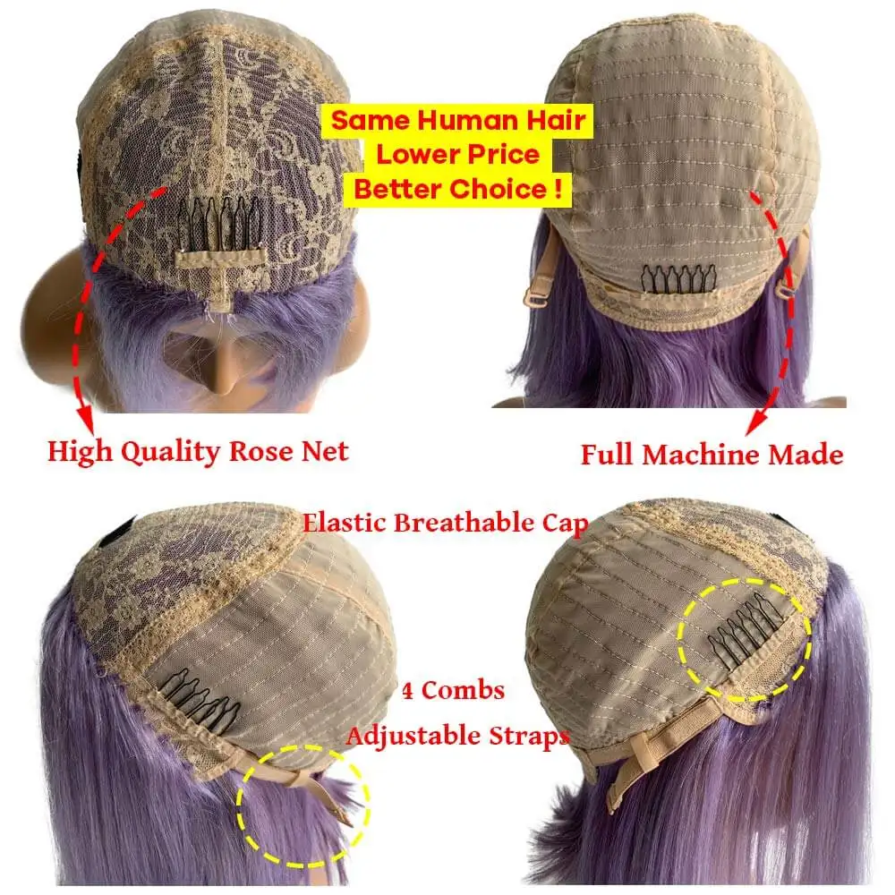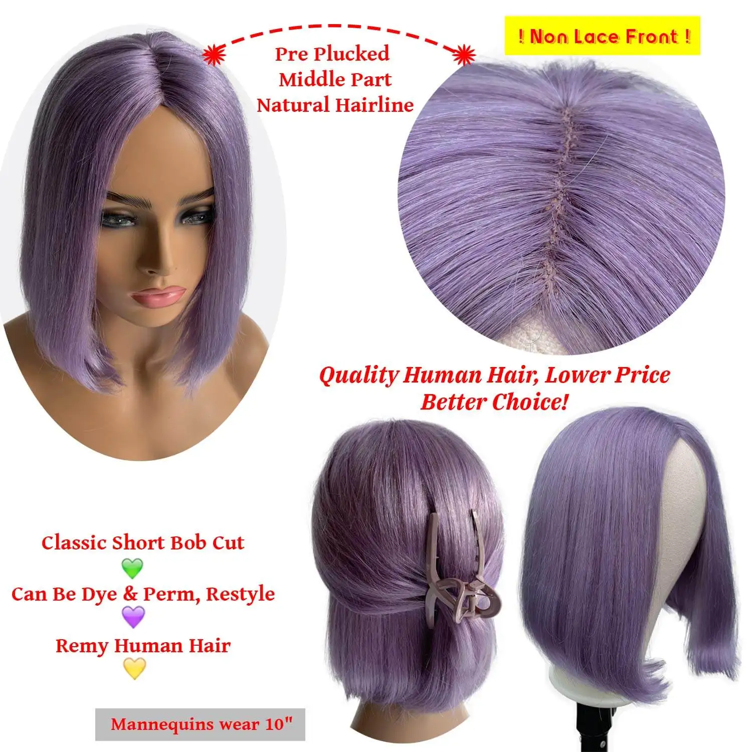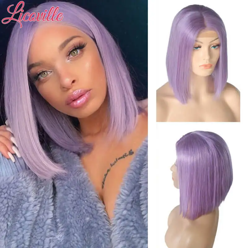 Парики из человеческих волос фиолетового цвета, прямые, полностью машинное изготовление, без шнуровки, короткие, для женщин, 180 плотность, бразильские волосы Licoville
