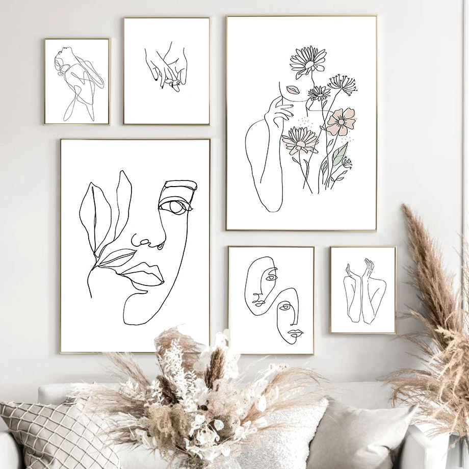 Абстрактная Минималистичная линия, Женская настенная Картина на хол...